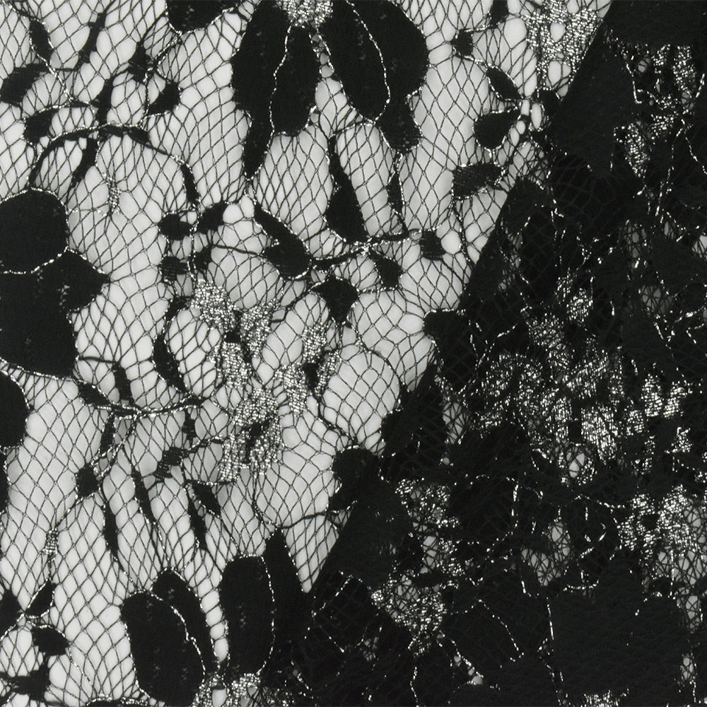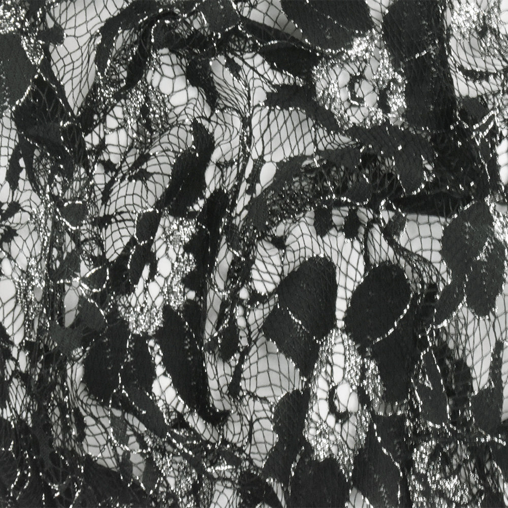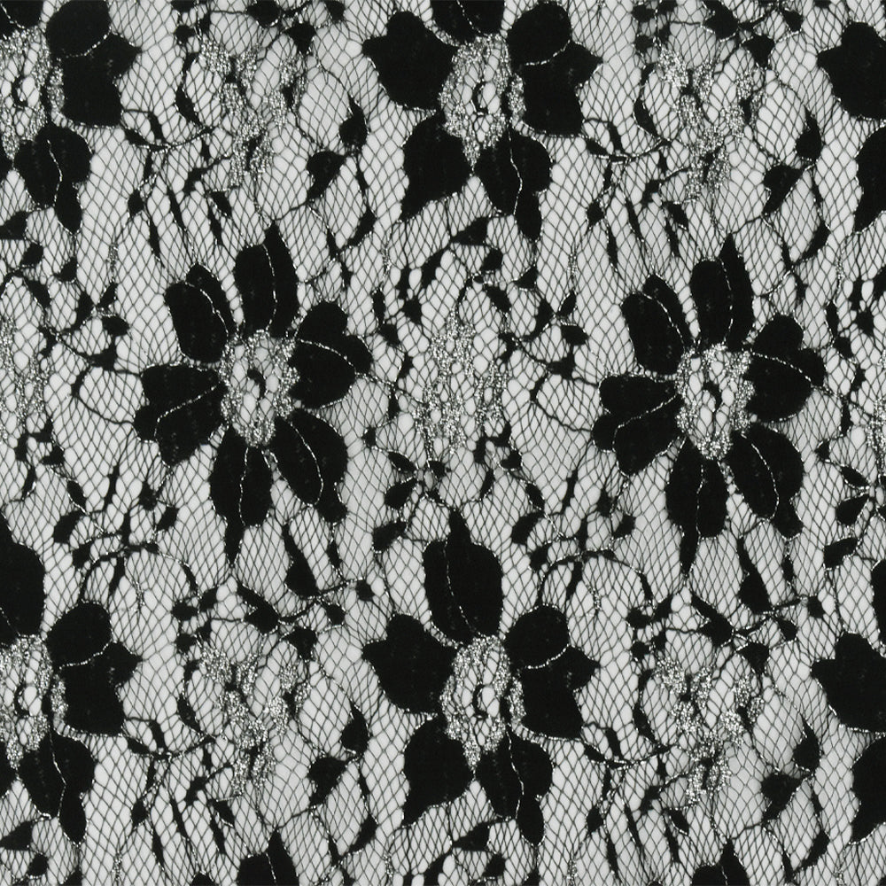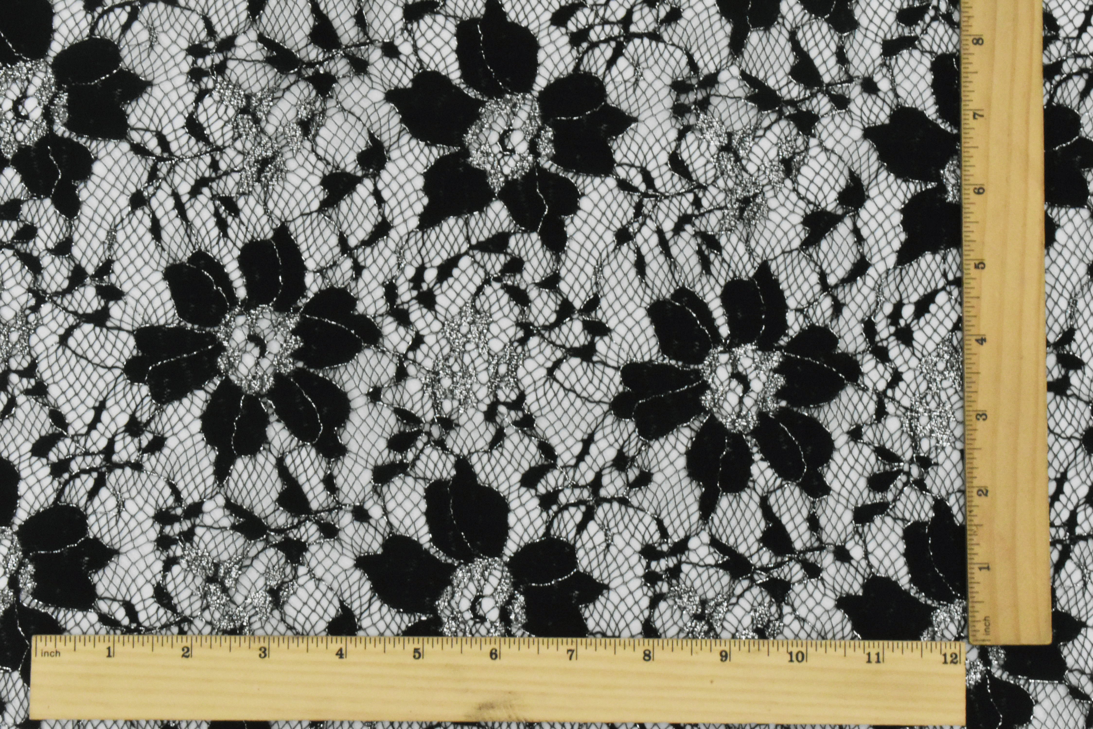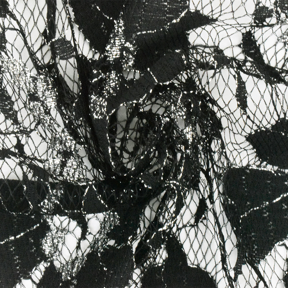 Black-Metallic Silver Floral Lace Knit Fabric