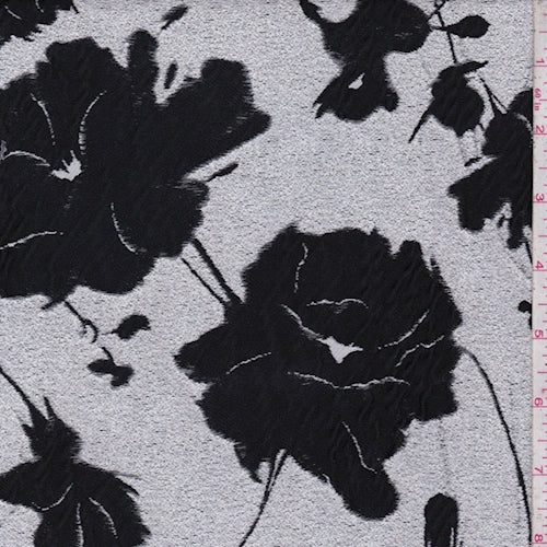 Black/Metallic Silver Modern Floral Jacquard Matelasse Fabric