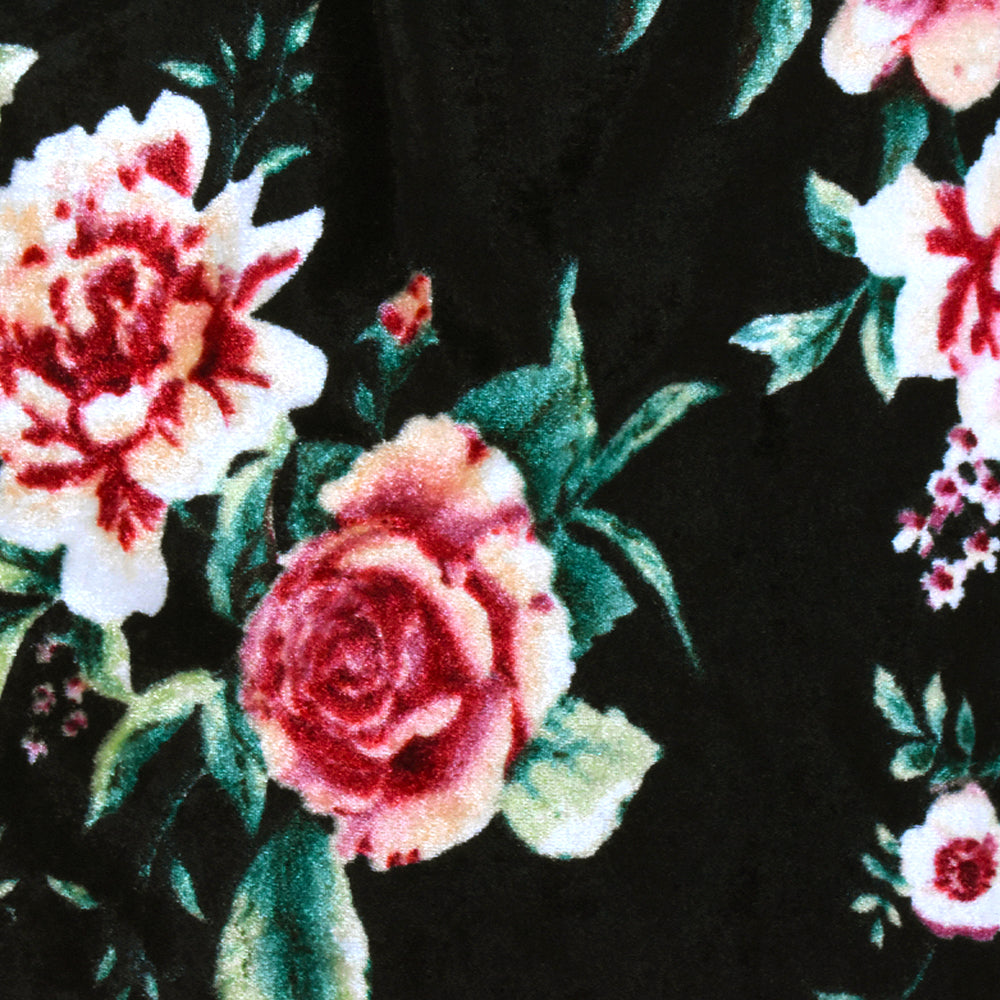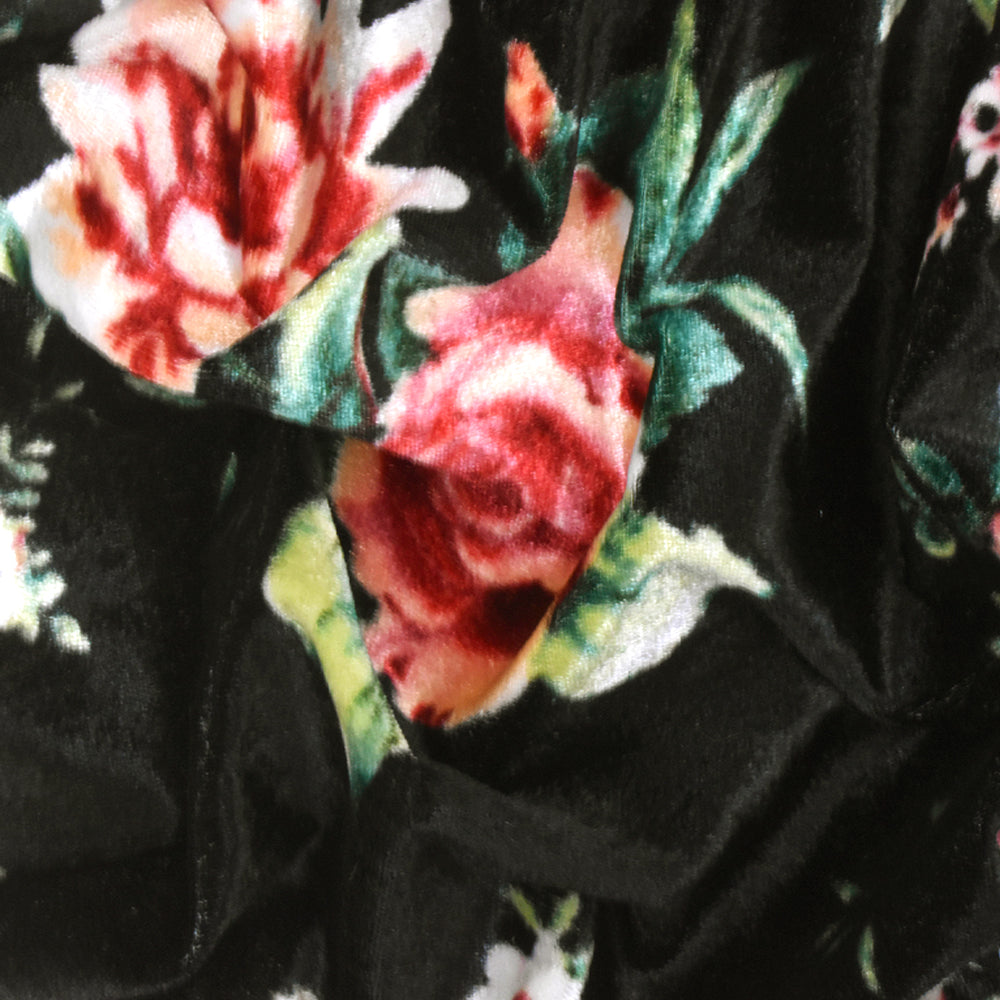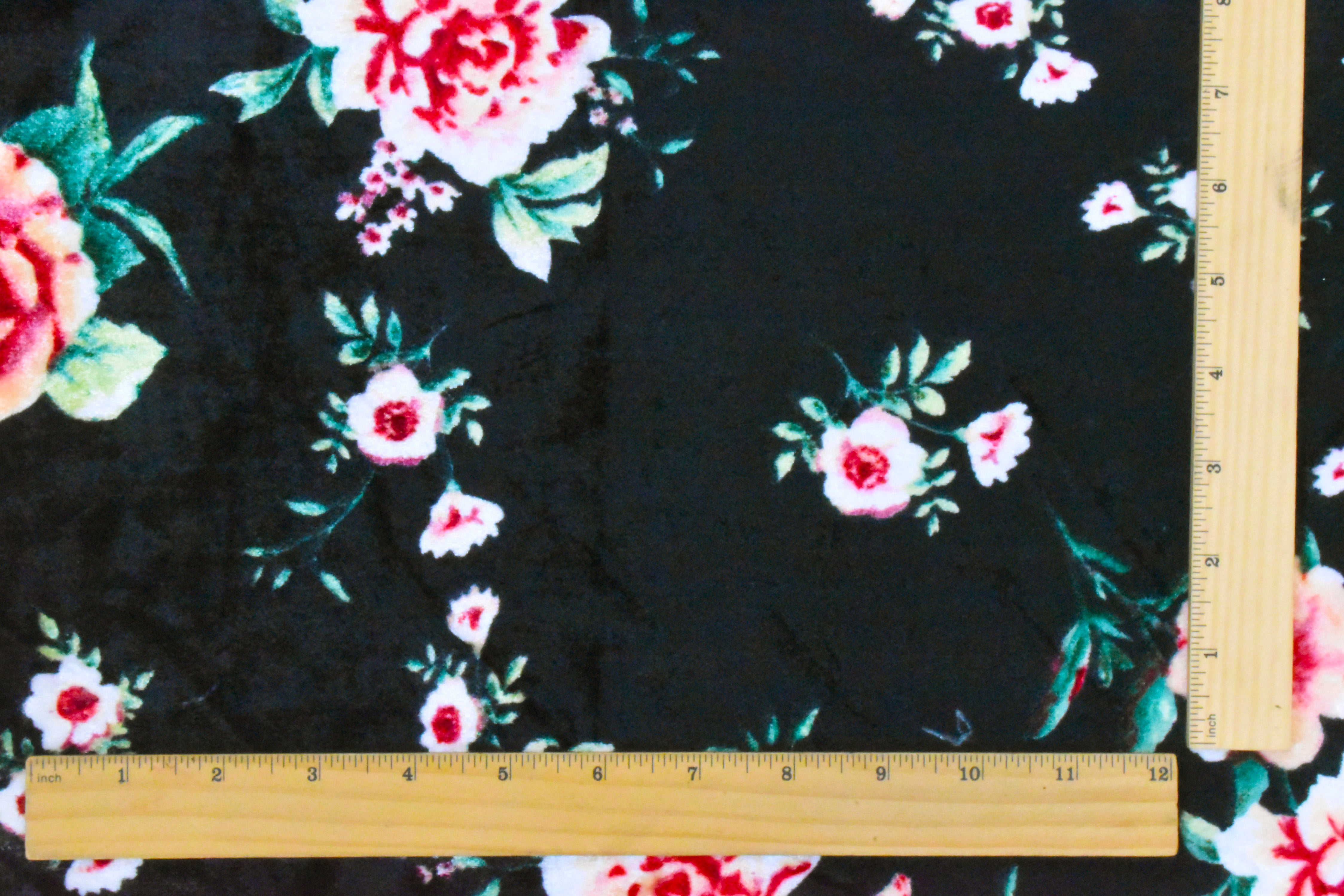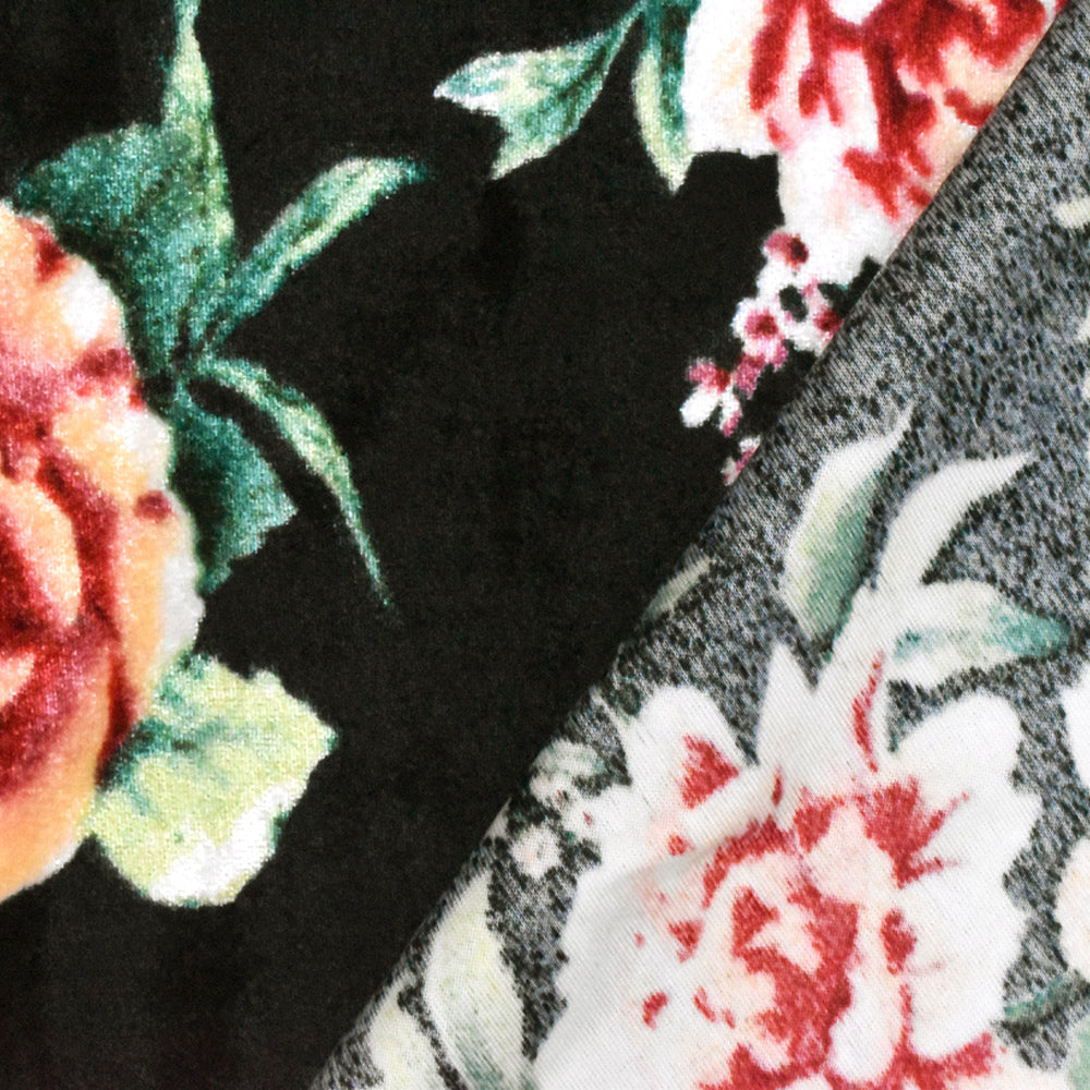 Black-Peach-Multi Floral Printed Velvet Knit Fabric