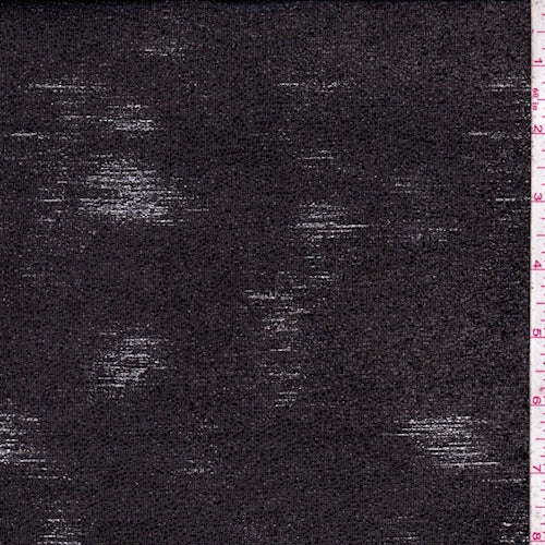 -Nylon micro mesh with a screen-printed metallic silver brushstroke design and metallic sparkle accents