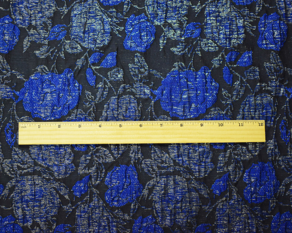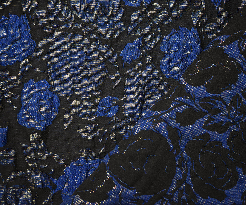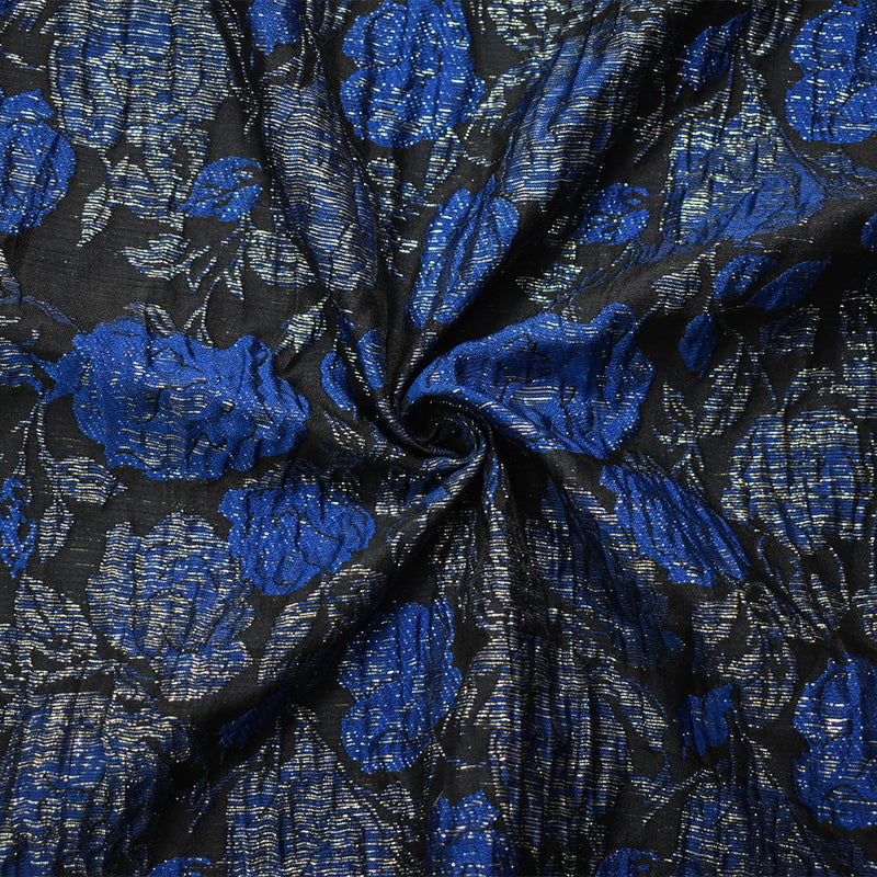 Blue-Gold Poly Metallic Floral Matelasse Jacquard Brocade Woven Fabric