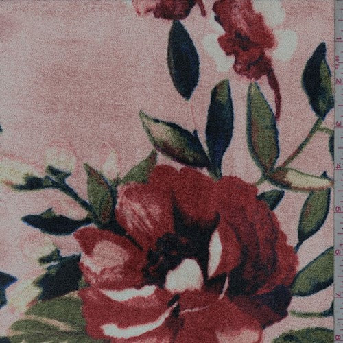 Peach/Rust/Multi Floral Print Stretch Velvet Knit Fabric