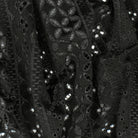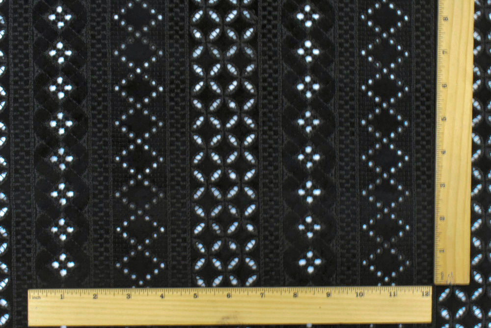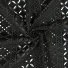 Soft Black Moroccan Embroidered Eyelet Stretch Poly Velvet Knit Fabric