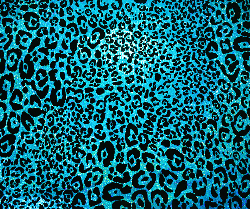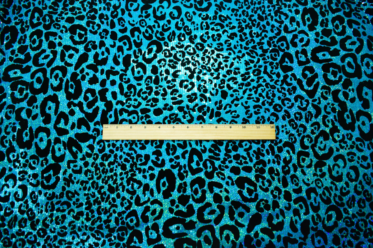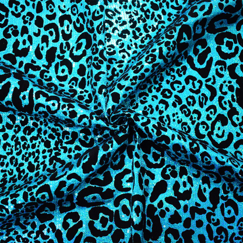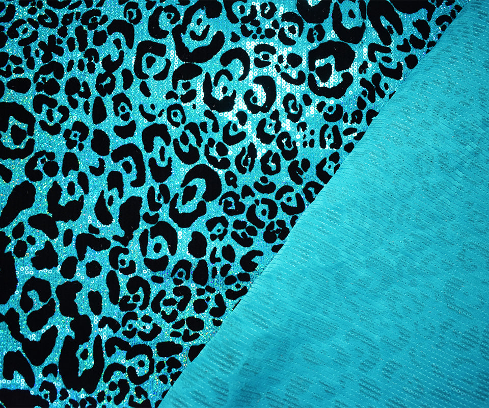 Turquoise-Black Poly Velvet Flock Cheetah Print Sequin Stretch Knit Fabric