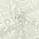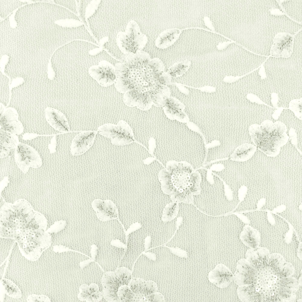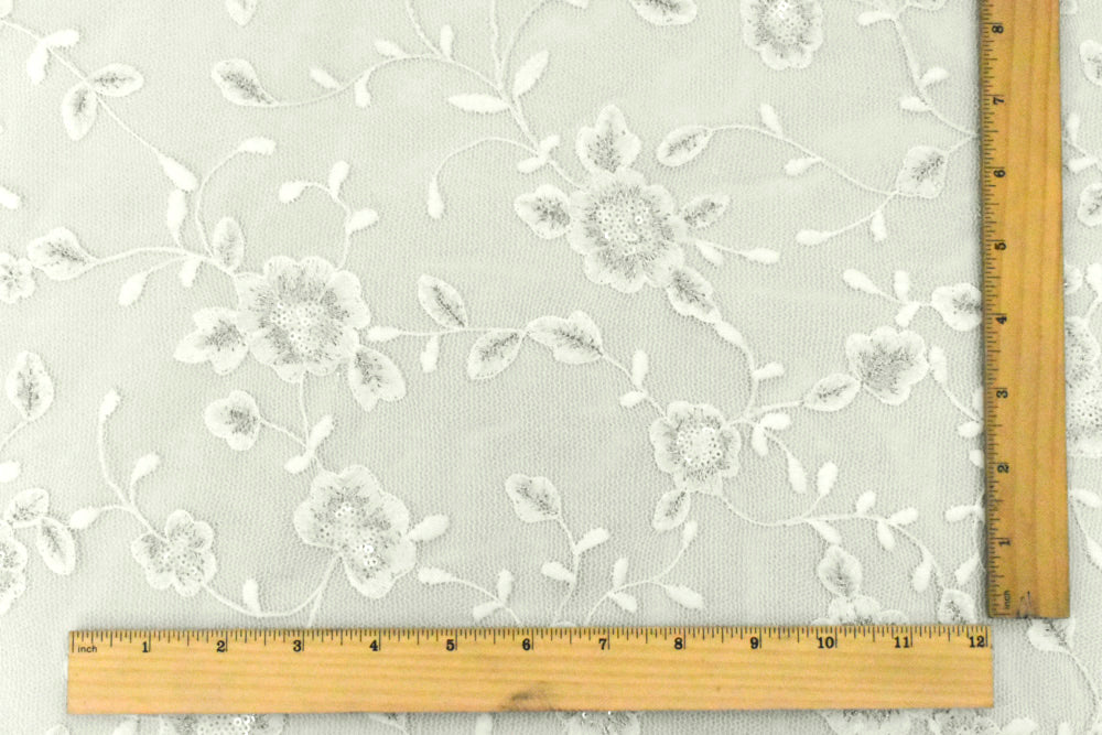 White-Silver Floral Metallic Sequin Embroidered Mesh Fabric