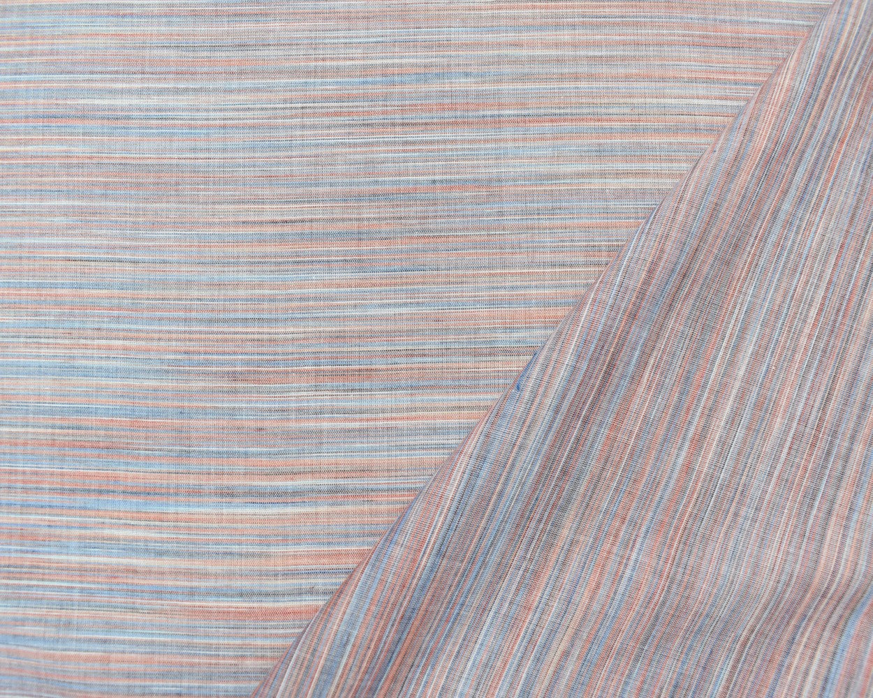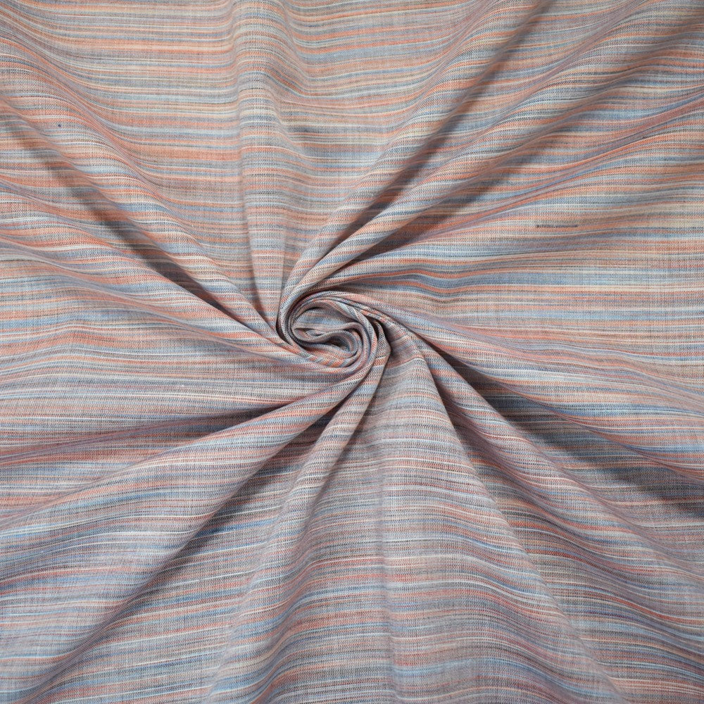 Blue-Orange-Multi Famous Maker Cotton Stripe Printed Lawn Woven Fabric