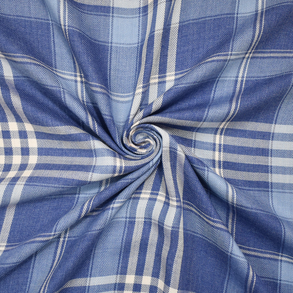 Blue-Ivory-Multi Famous Maker Cotton-Rayon Plaid Twill Shirting Woven Fabric