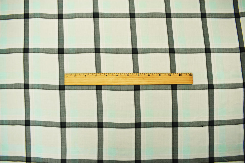 Ivory-Mint-Multi Rayon Famous Maker Plaid Twill Woven Fabric