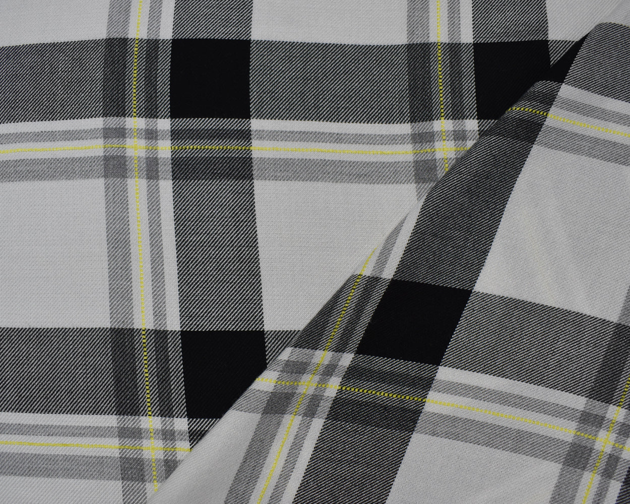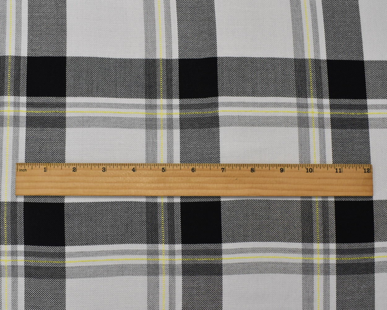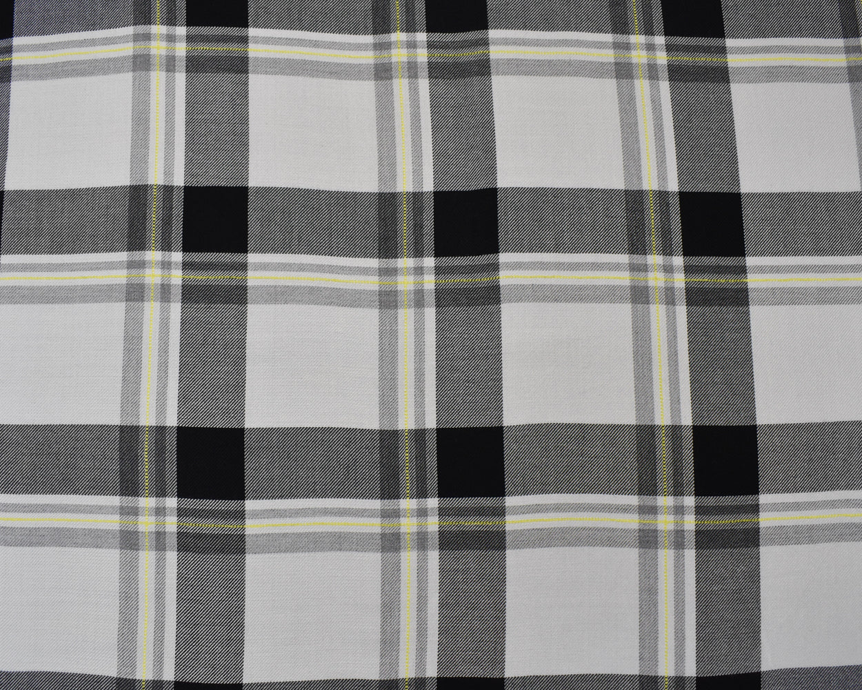 White-Yellow-Black Rayon Famous Maker Plaid Twill Woven Fabric
