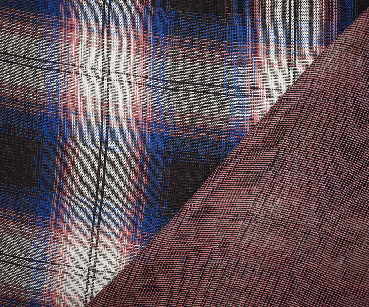 -100% cotton double gauze woven fabric featuring a classic plaid/check pattern on one side, and a textured reverse surface