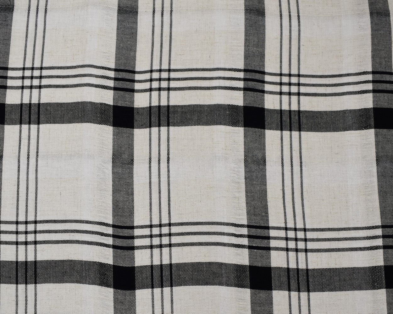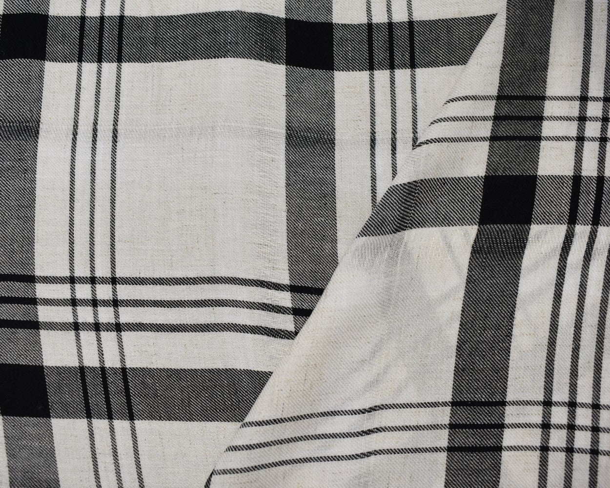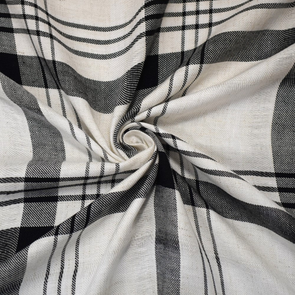 White-Beige-Black Rayon-Cotton Famous Maker Plaid Twill Woven Fabric