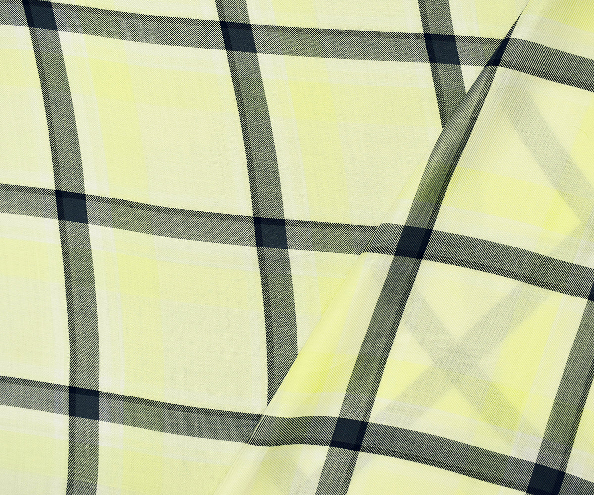 White-Yellow-Black Rayon Famous Maker Plaid Twill Woven Fabric