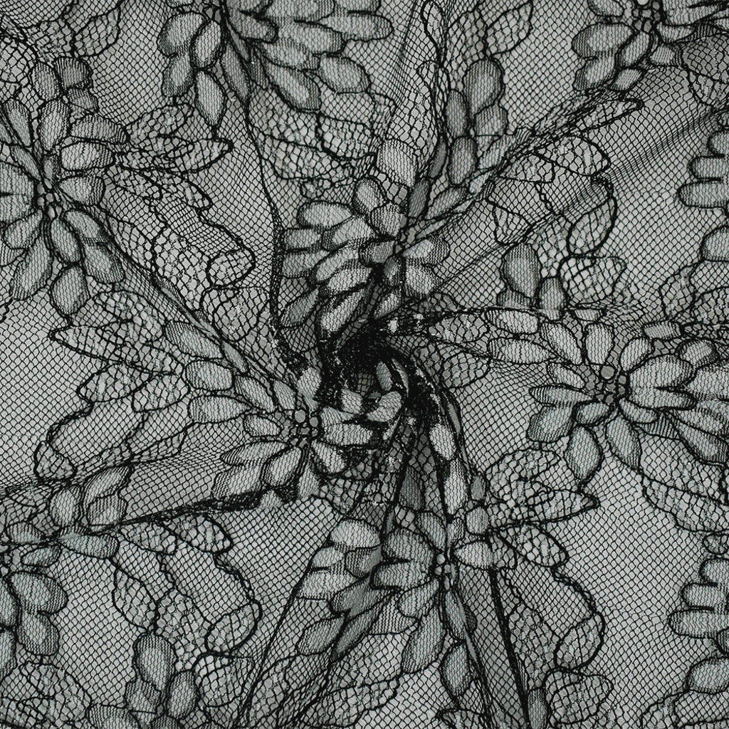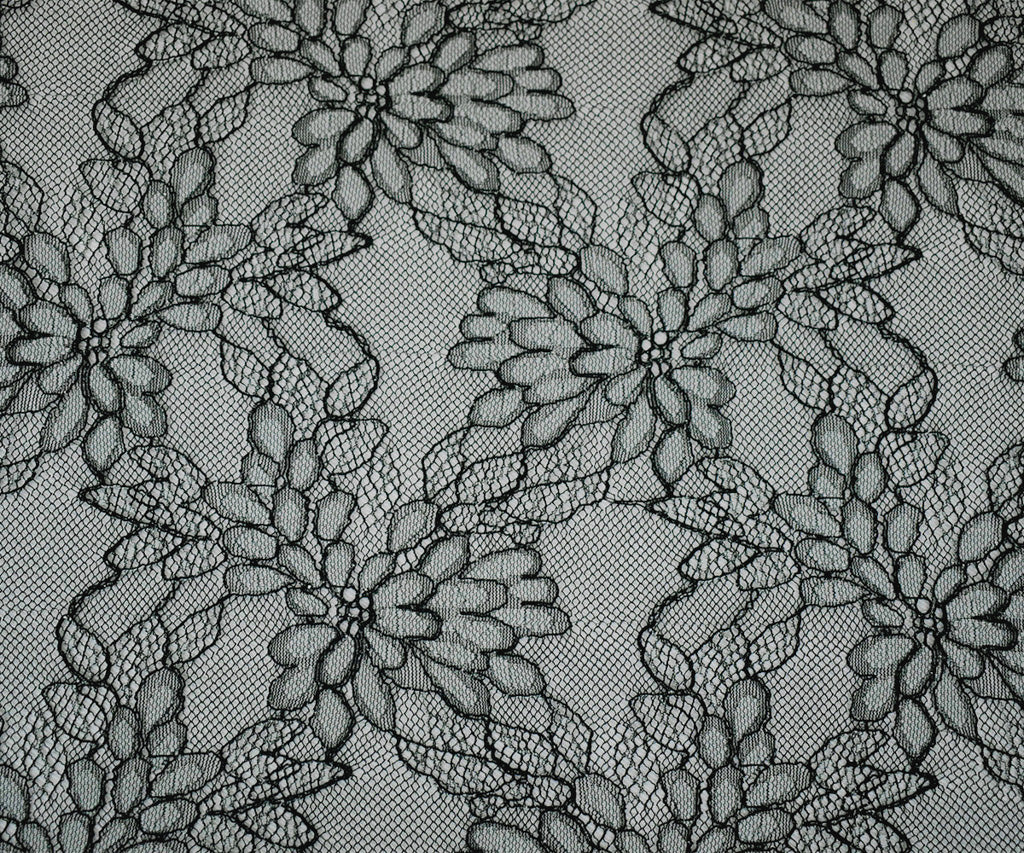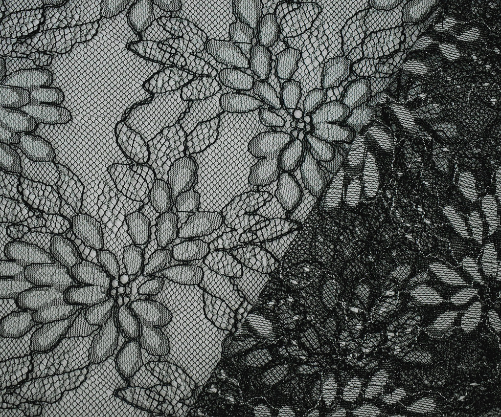 Black-White-Silver Polyester Nylon Floral Lace Mesh Knit Fabric