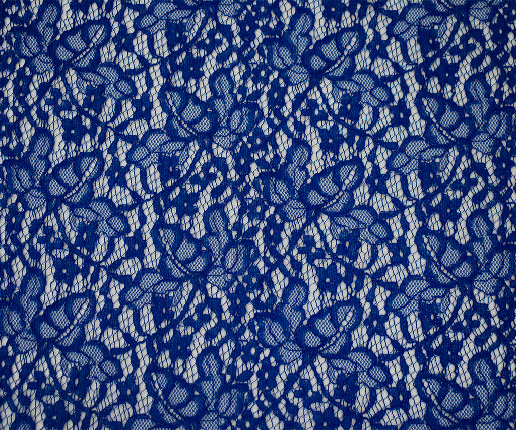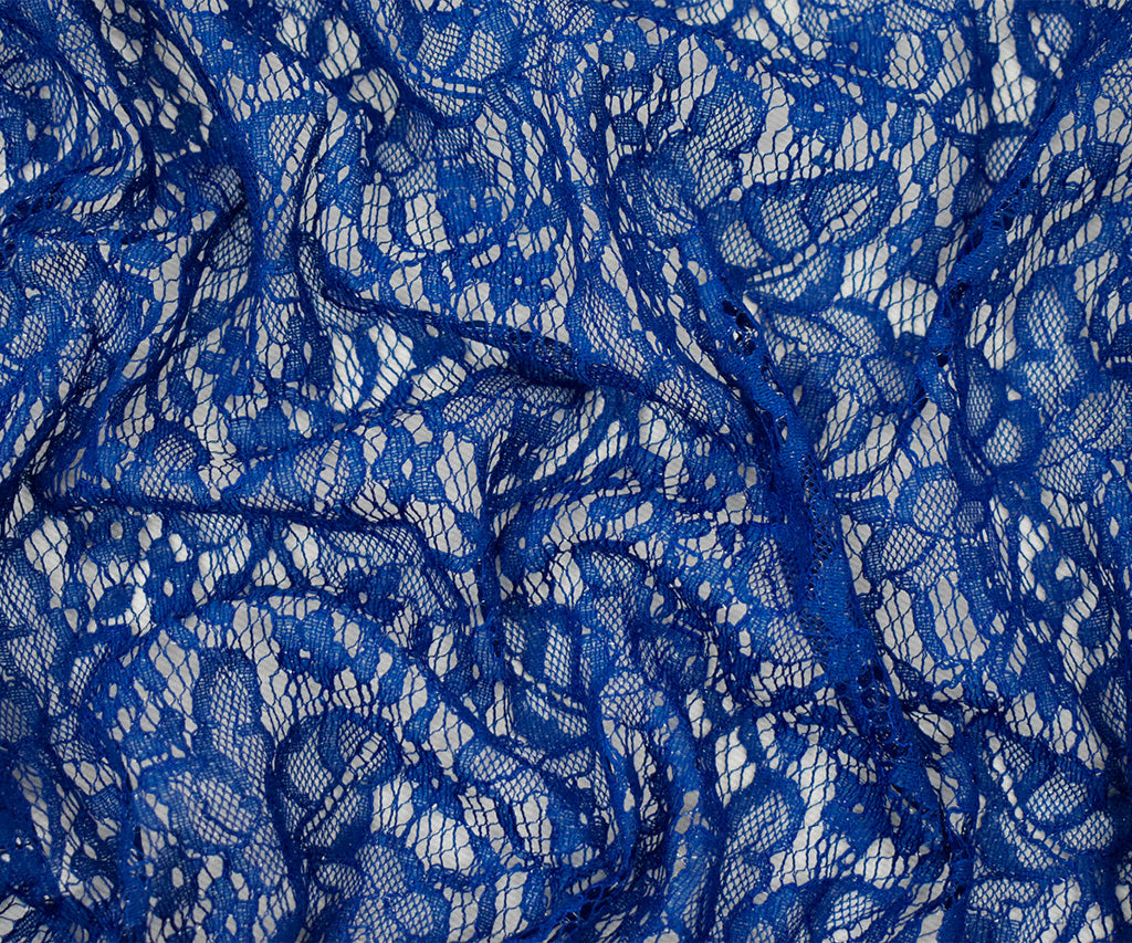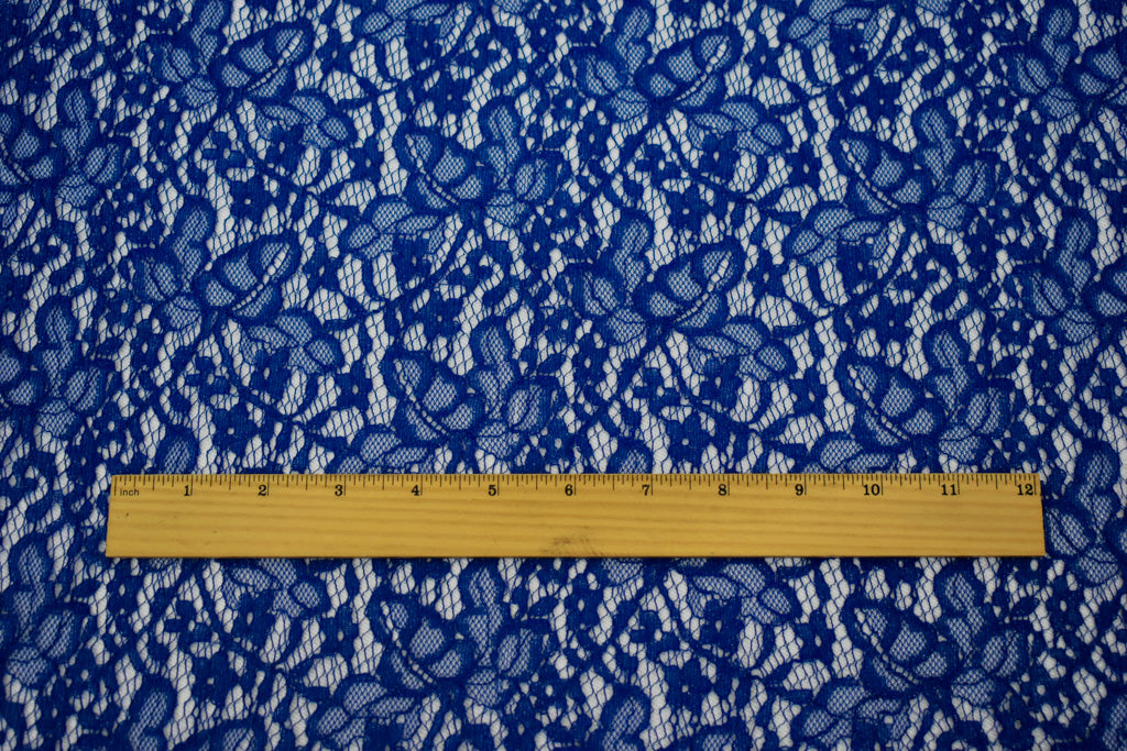 Deep Blue-Silver Cotton Poly Crochet Floral Lace Mesh Knit Fabric