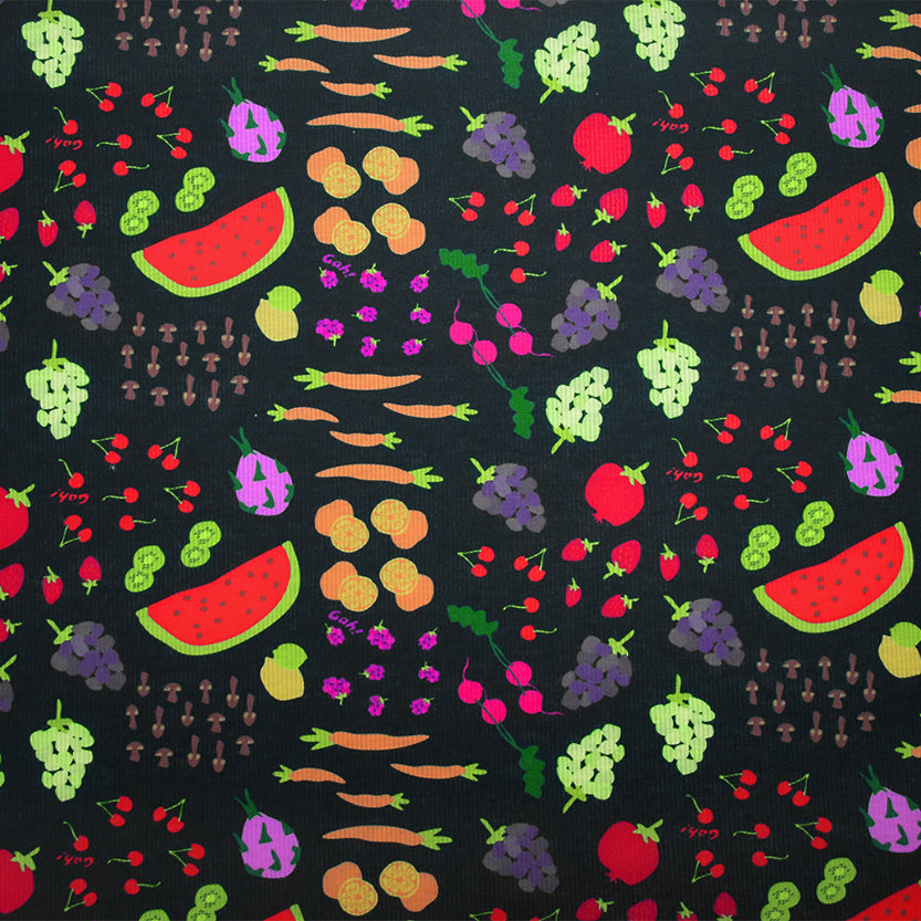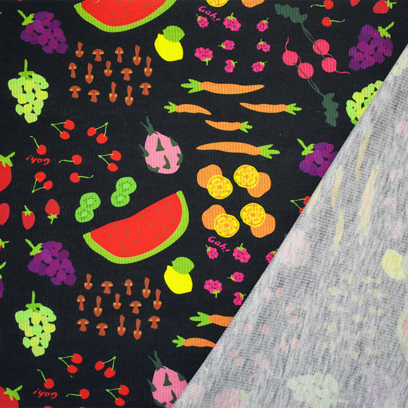 Stripe & Print Rib Knit Fabric - A knit fabric in which the wales or vertical rows of stitches intermesh alternately on the face and the back. Ribbed knit fabrics of this type have good elasticity for sewing many types of items as well as finishing necklines, cuffs, collars, and hems.