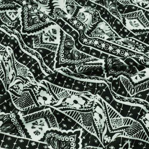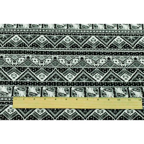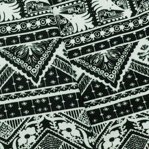 Black/White Tribal Printed Double Brushed Stretch ITY Knit Fabric