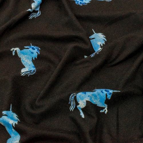 Blue/Black Unicorn Printed Double Brushed ITY Knit Fabric