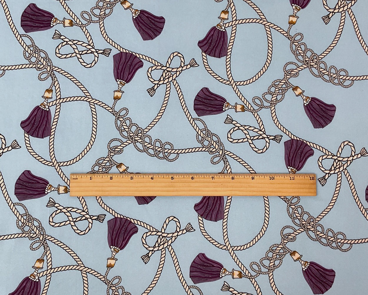 -Blue-Multi Poly Spandex Stretch Rope and Tassel Print Double Brush Jersey Knit Fabric