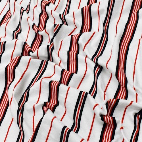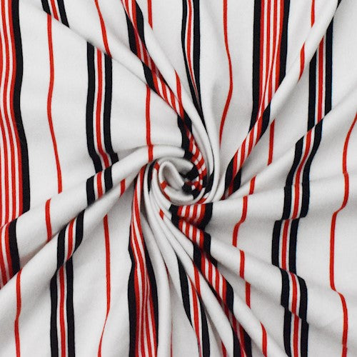Green/Multi Stripe Printed Double Brush ITY Knit Fabric