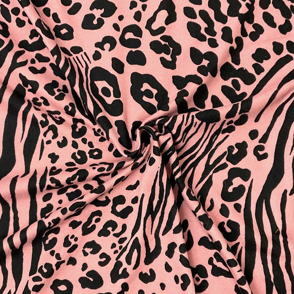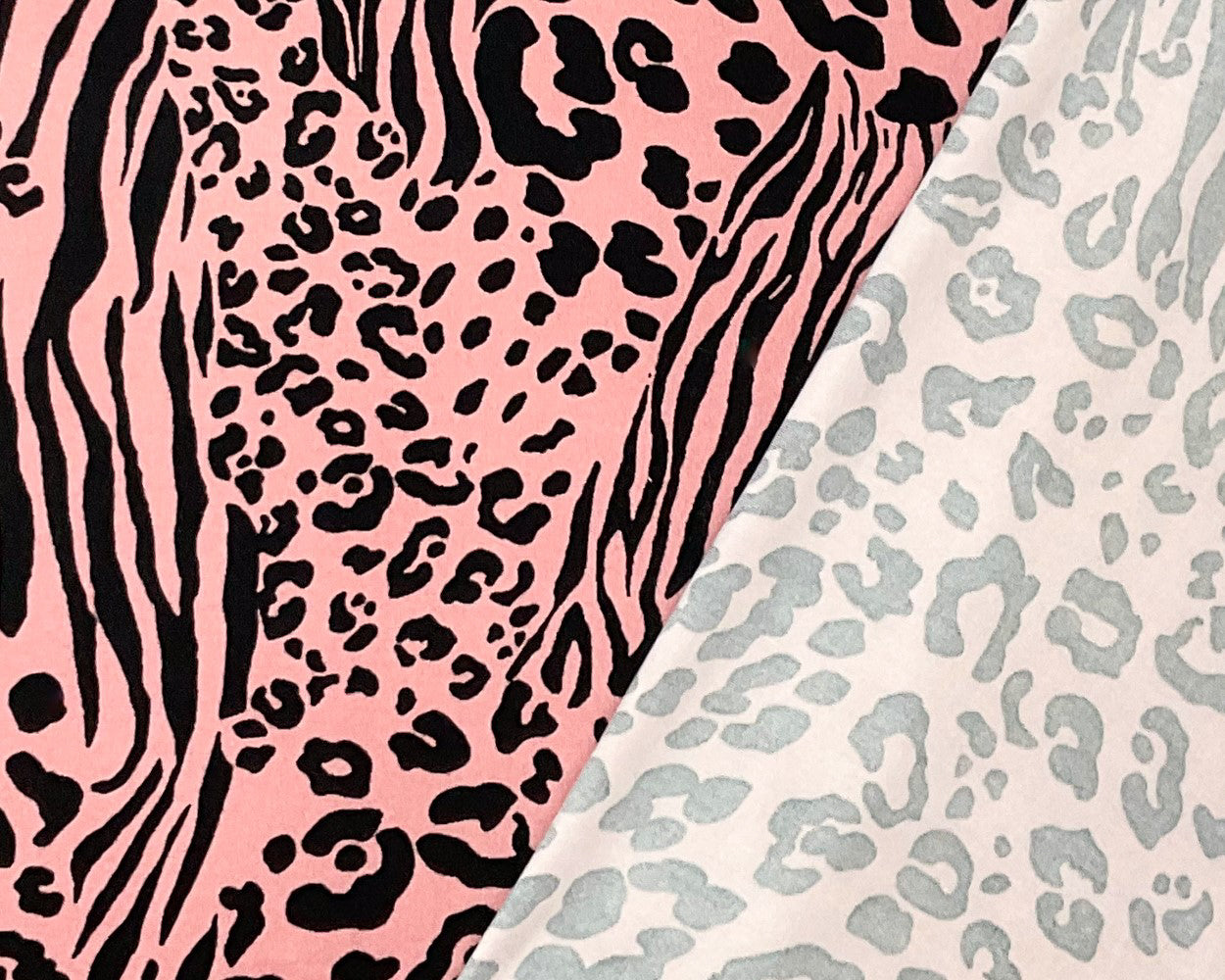 -Pink-Multi Poly Spandex Stretch Leopard Print Double Brush Jersey Knit Fabric