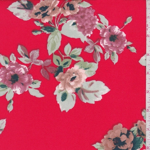 Red/Mauve Multi Floral Brushed Jersey Knit Fabric