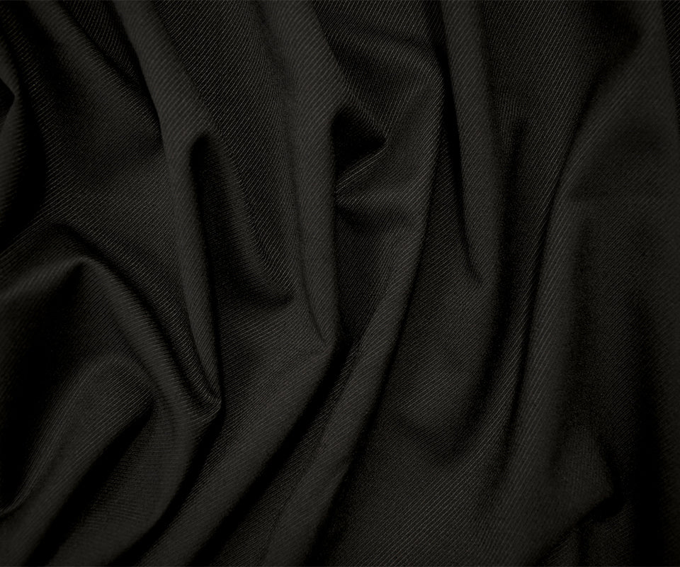 7 YD PC-Black Wool Poly Solid Twill Woven Suiting Fabric
