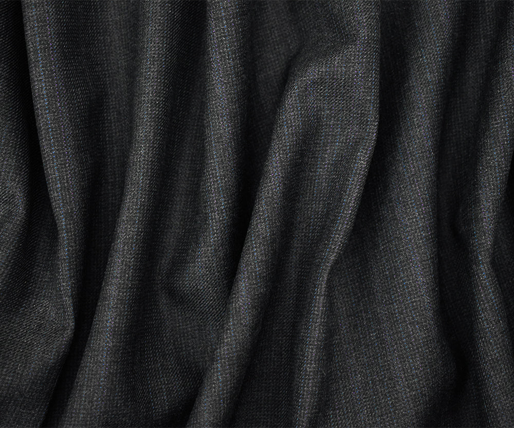 Black-Blue-Multi Wool-Polyester Texture Striped Woven Twill Suiting Fabric