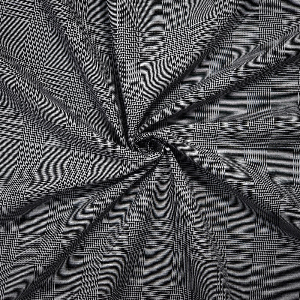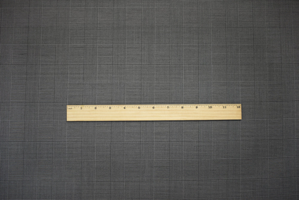 Black-Gray Wool-Poly Japanese Glen Plaid Woven Suiting Fabric