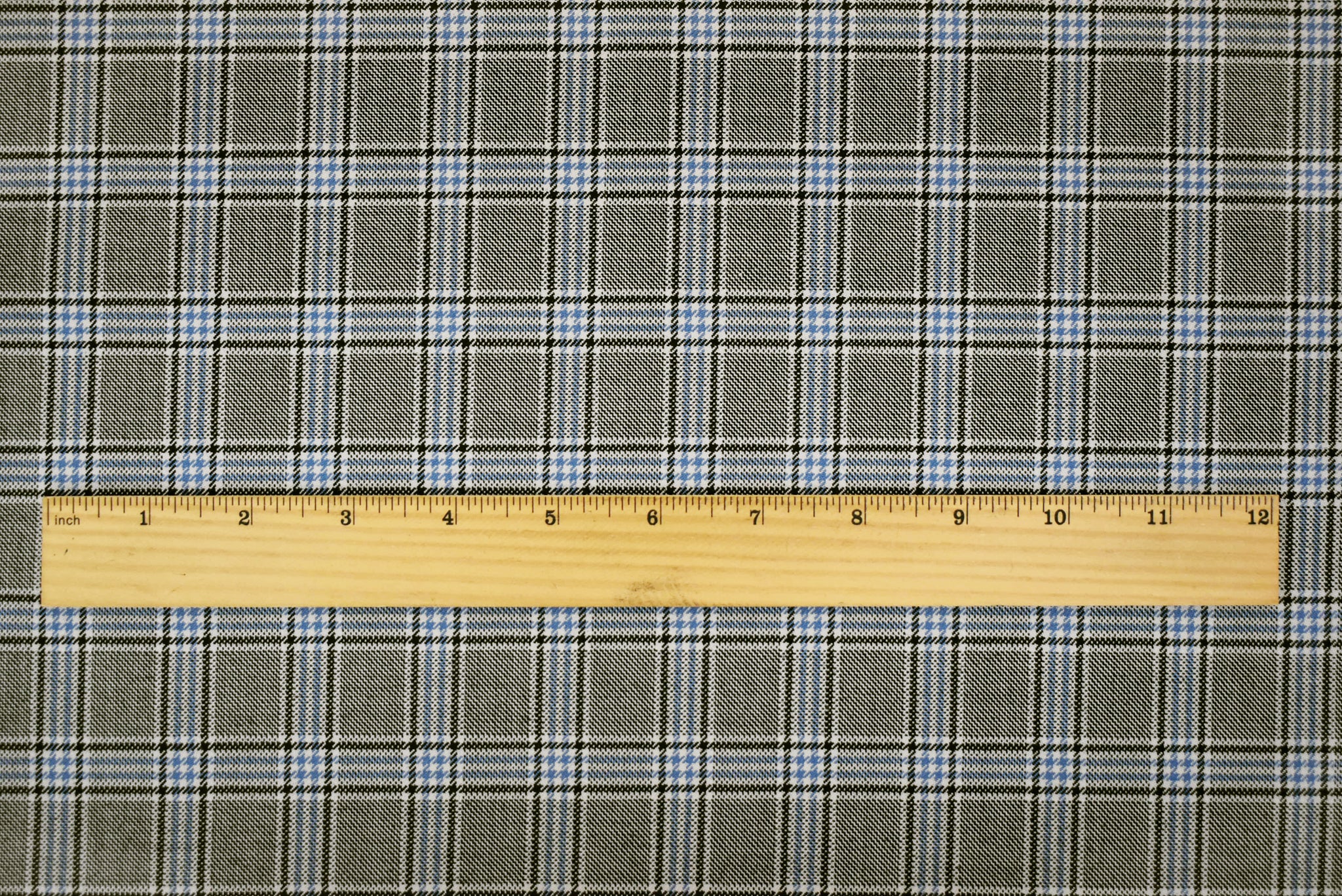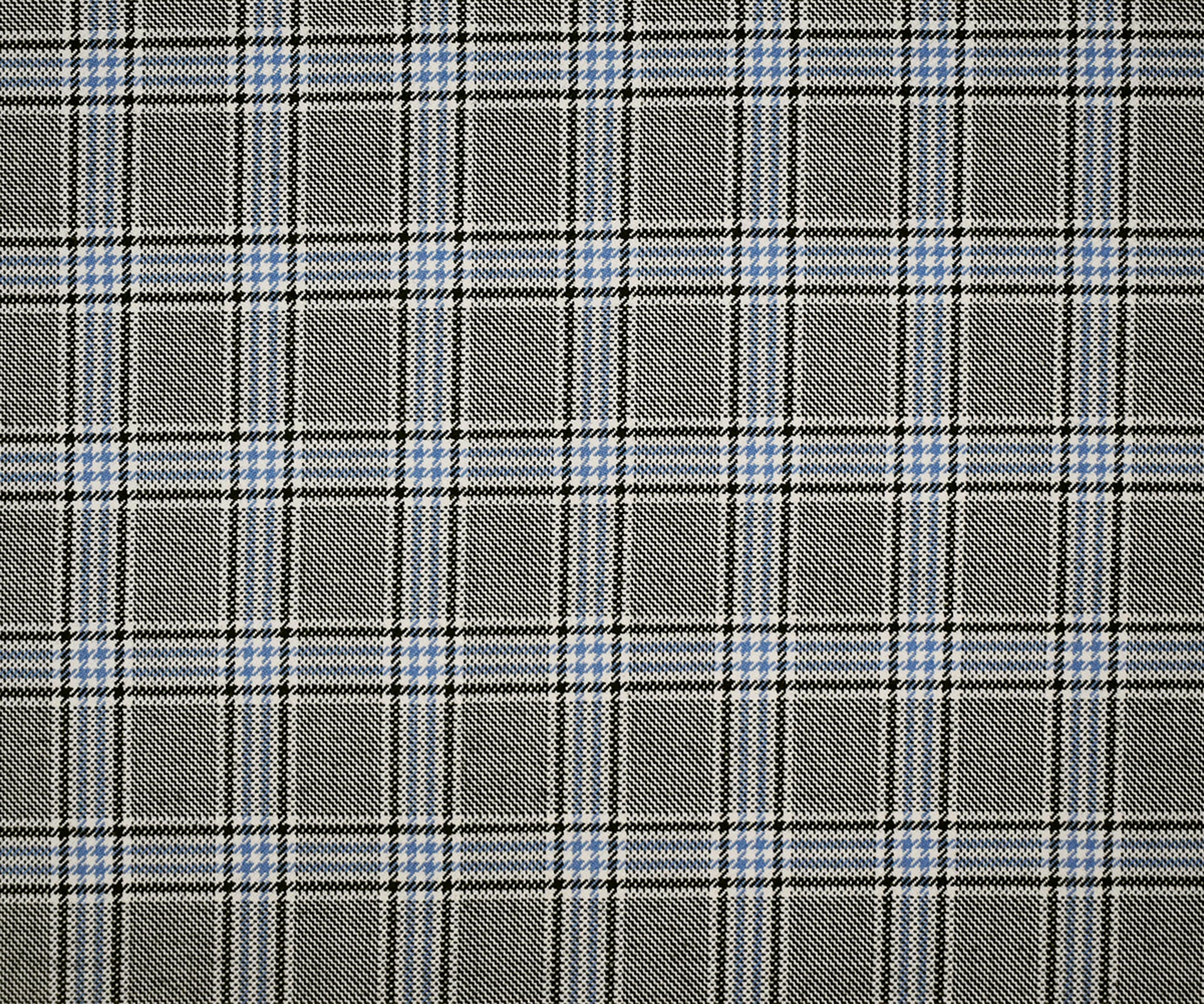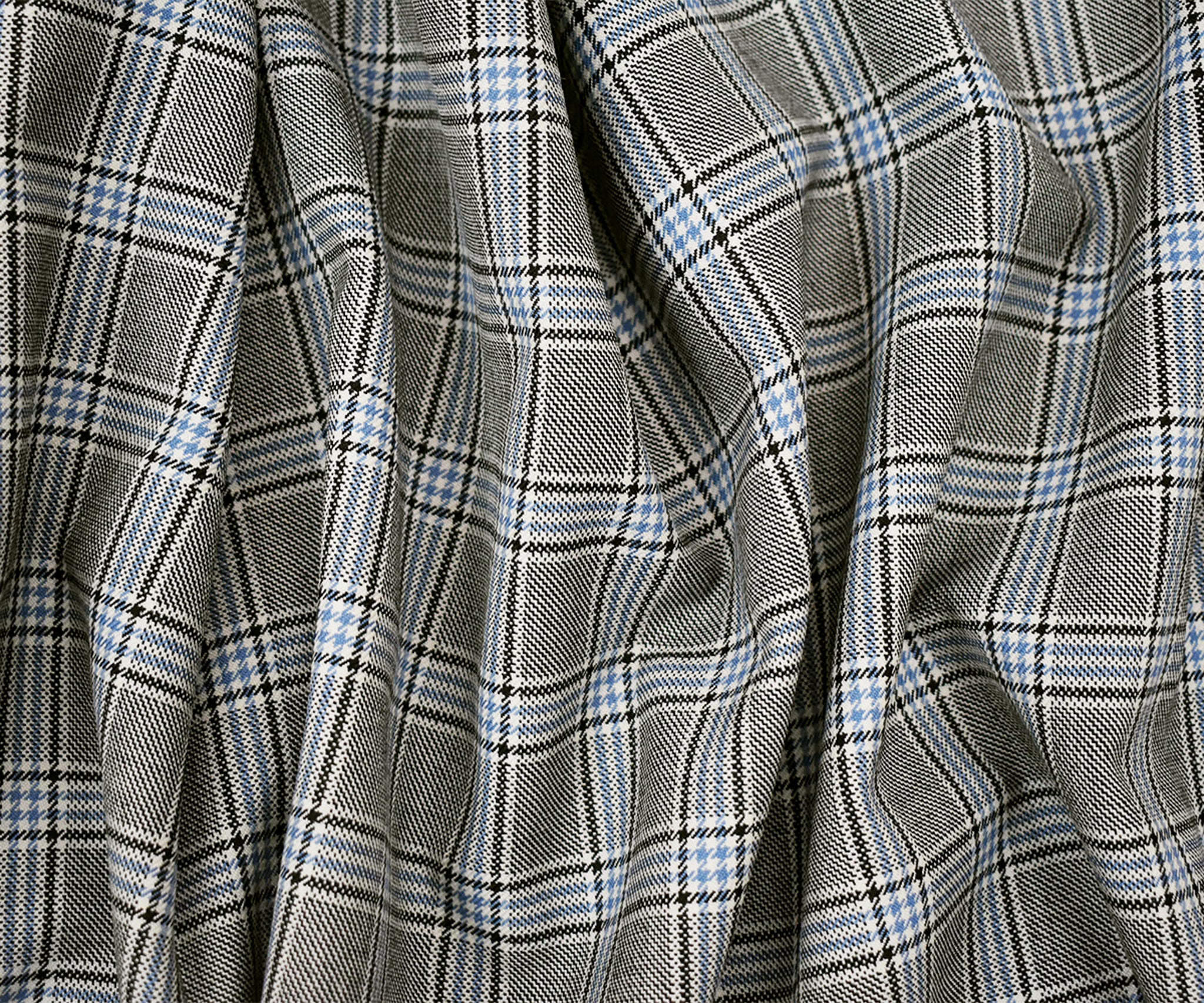 Black-White-Blue Poly Wool Plaid Twill Woven Suiting Fabric