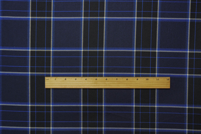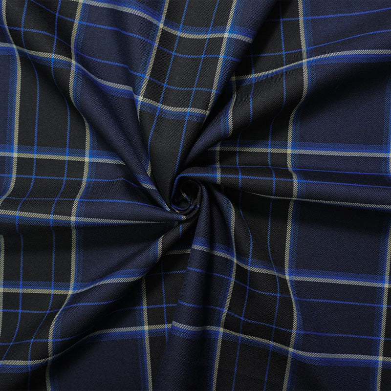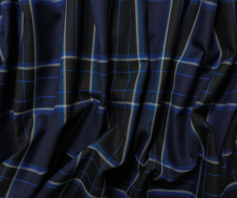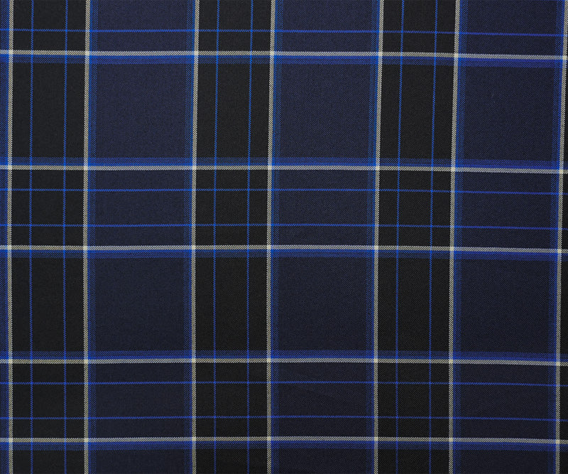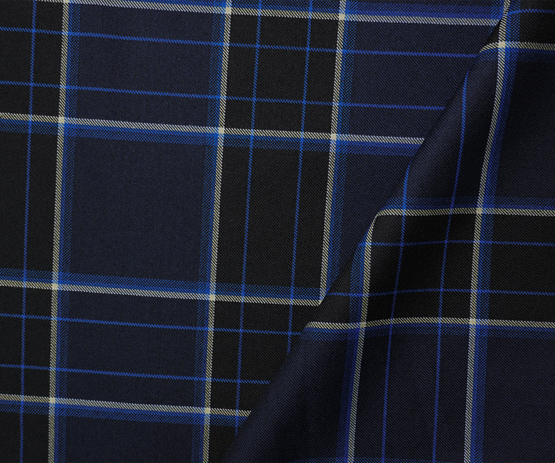 Blue-Black-White Poly Wool Plaid-Check Twill Woven Suiting Fabric