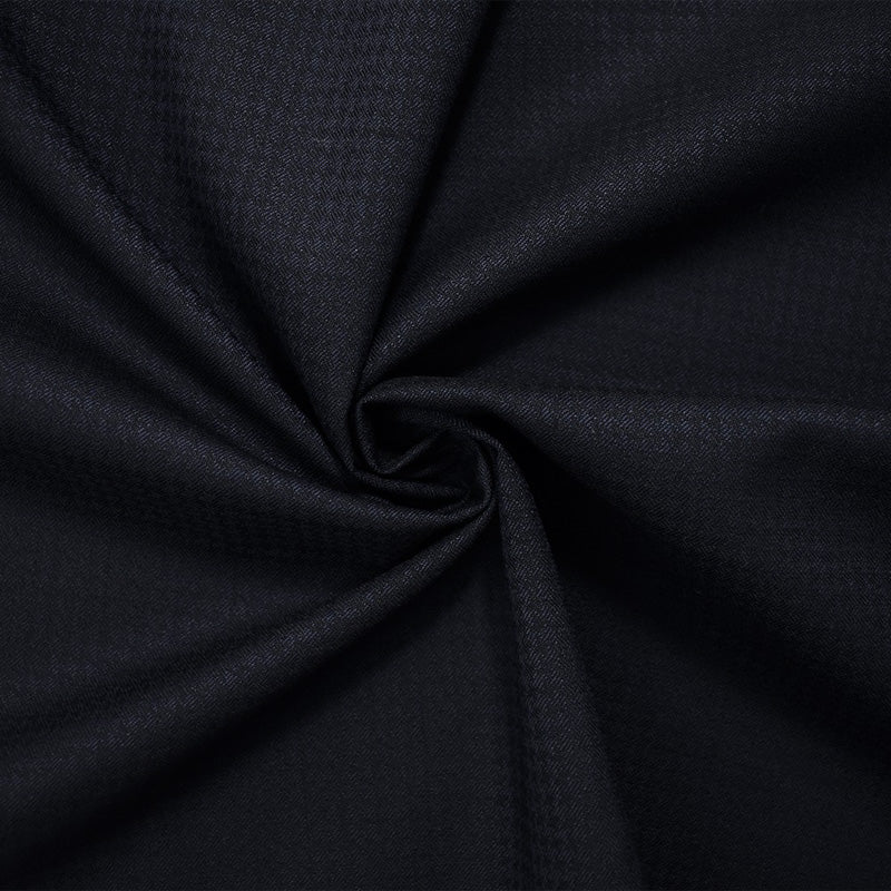 Blue-Black Wool Rayon Houndstooth Twill Woven Suiting Fabric