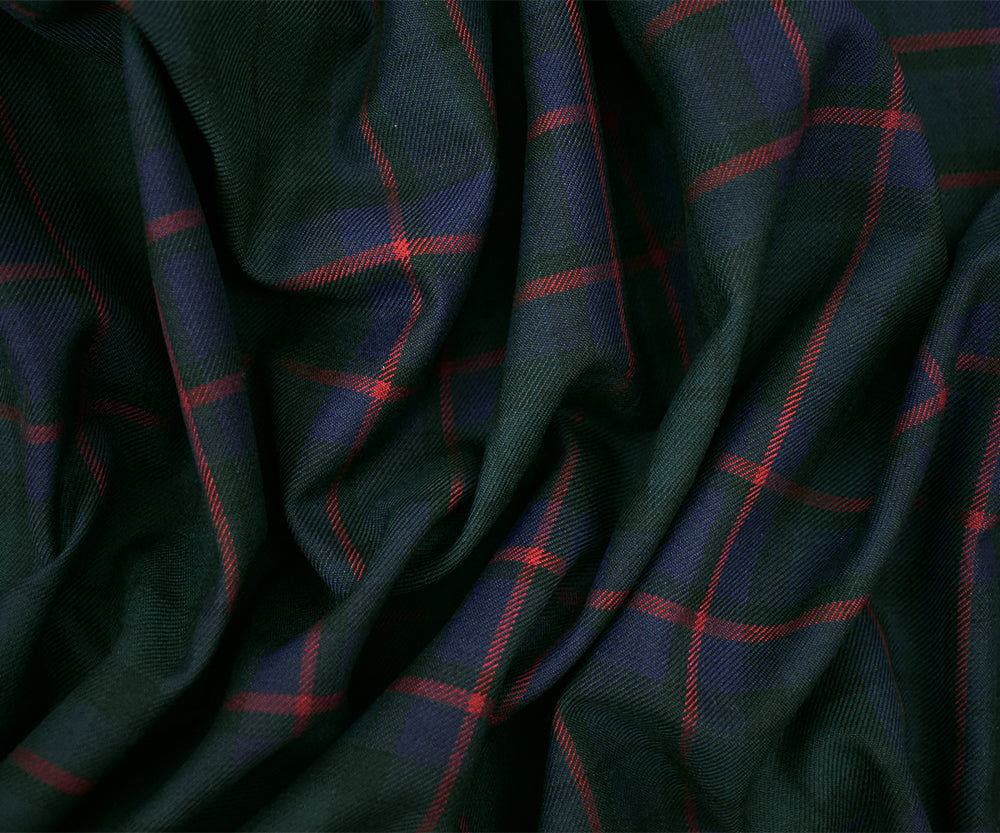 Blue-Red-Multi Poly-Wool Blend Plaid Woven Twill Suiting Woven Fabric