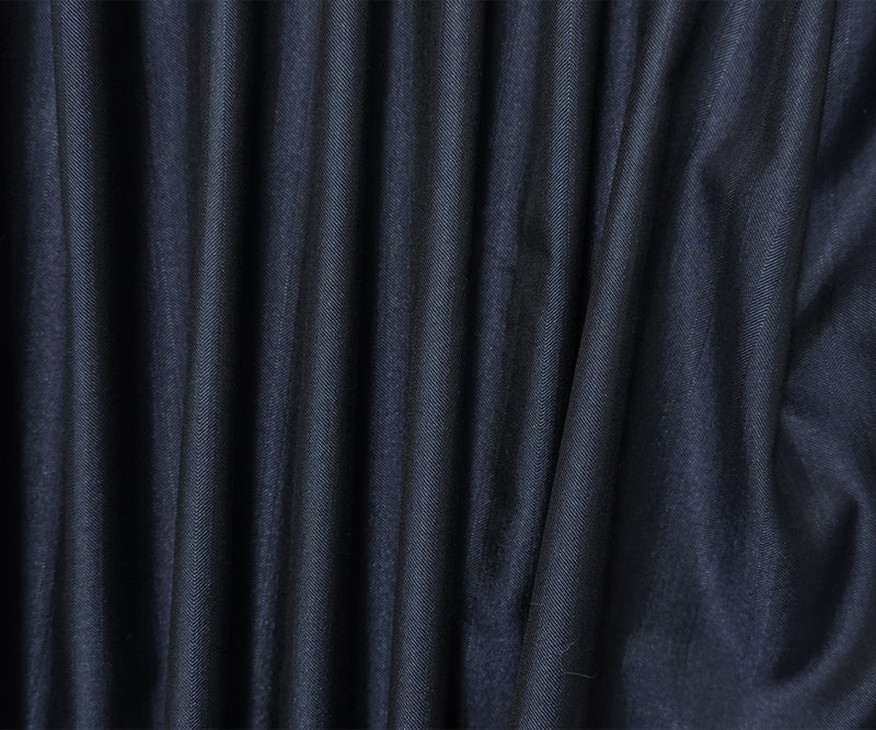 Blue Wool Poly Herringbone Twill Woven Suiting Fabric
