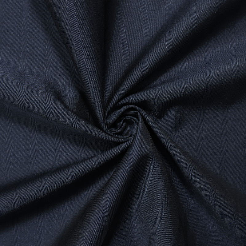 -This blue wool-poly blend features a classic herringbone pattern woven in a durable twill construction.