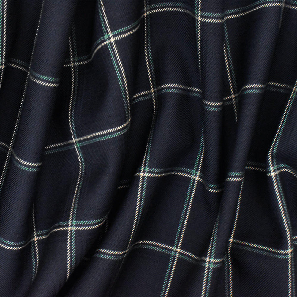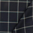 Deep Navy-Beige-Green Check Wool-Poly Twill Woven Suiting Fabric