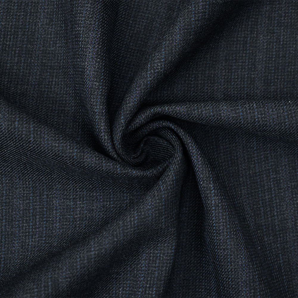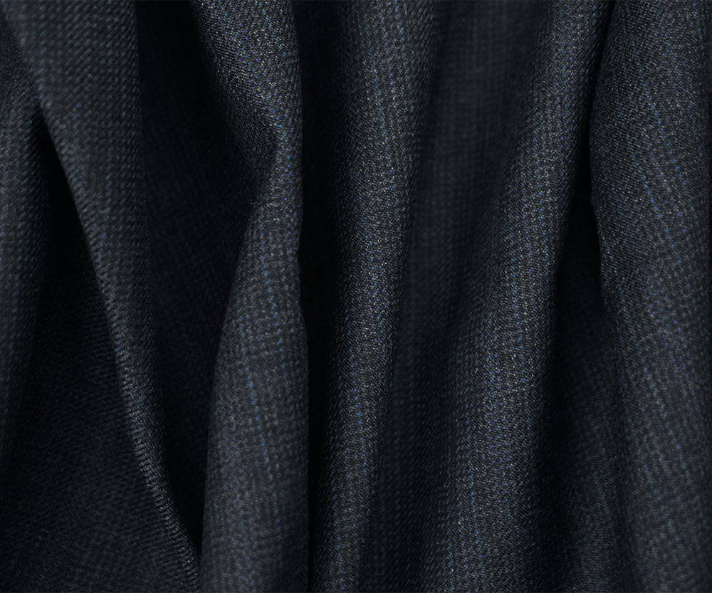 Gray-Black-Blue Wool Poly Faded Texture Stripe Twill Woven Suiting Fabric