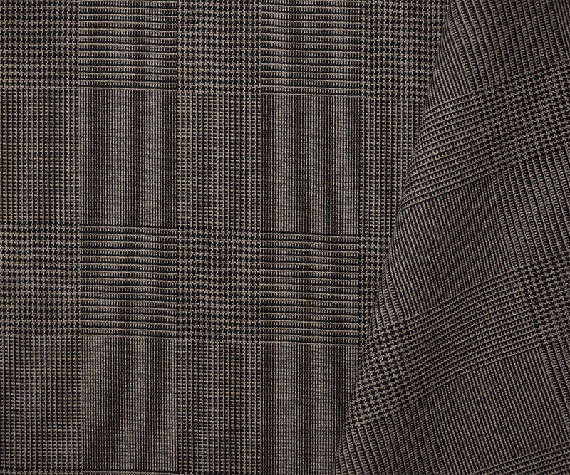 Gray-Black Wool Poly Glen Plaid Woven Suiting Fabric