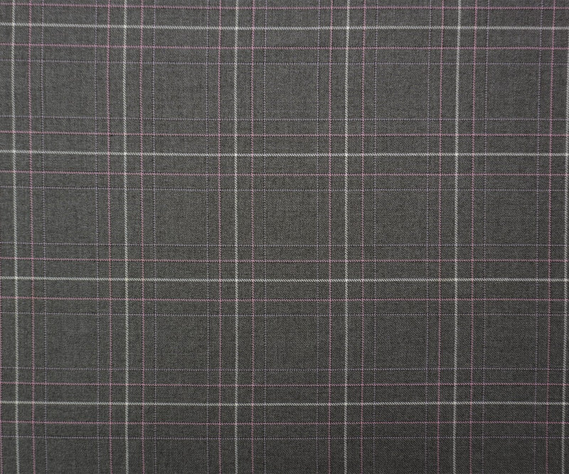 Gray-Pink-Multi Poly Wool Plaid Twill Woven Suiting Fabric