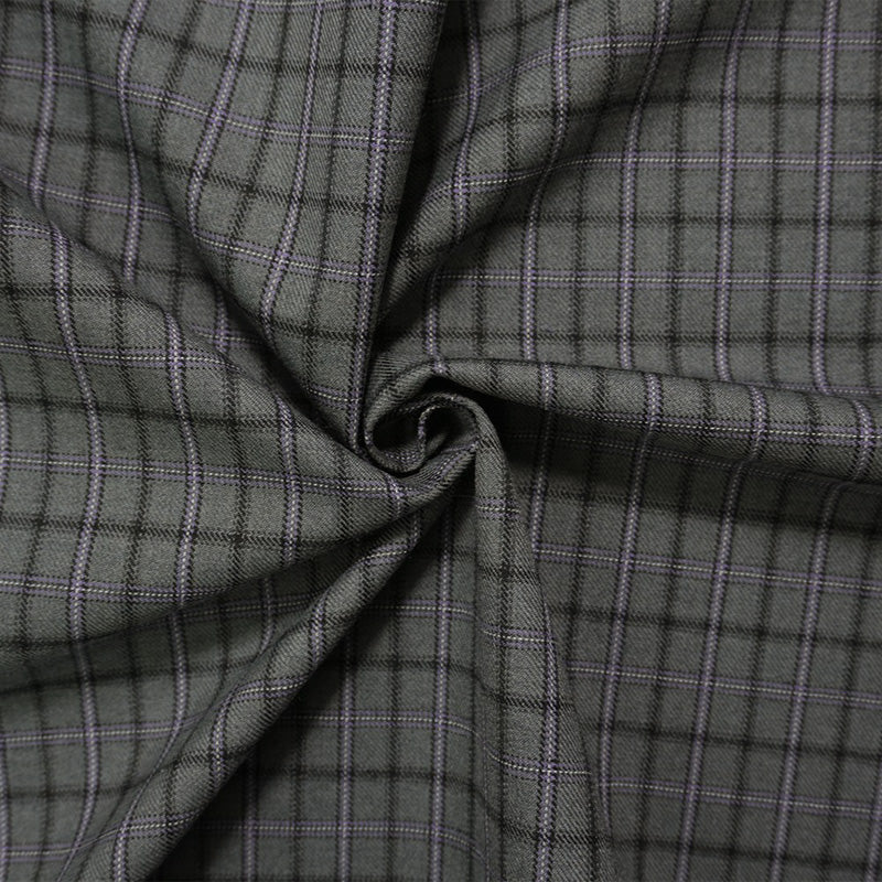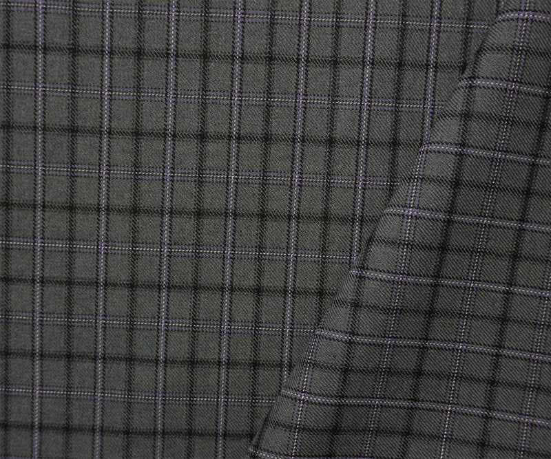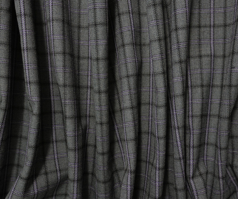 Gray-Purple-Multi Wool-Poly Plaid Twill Suiting Fabric