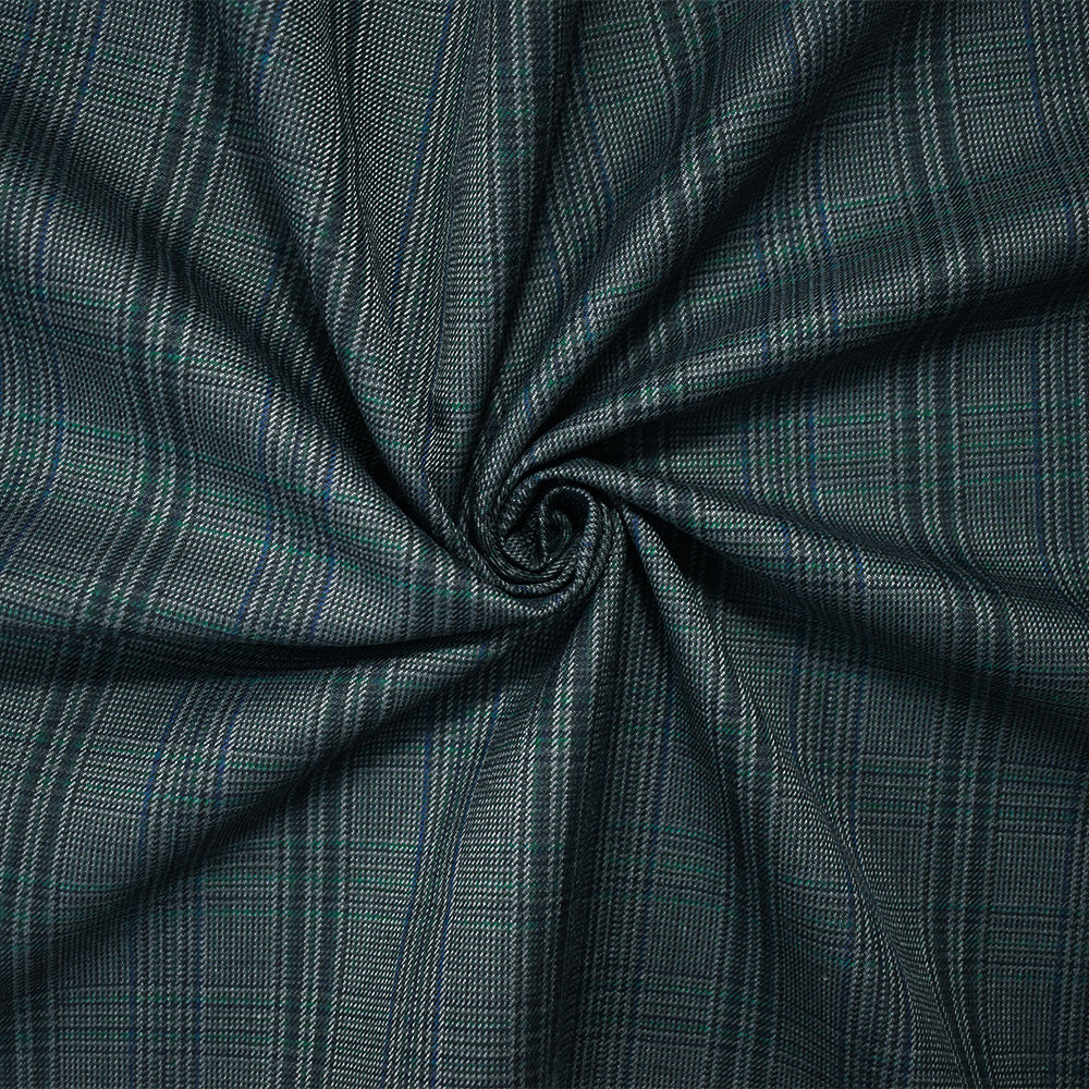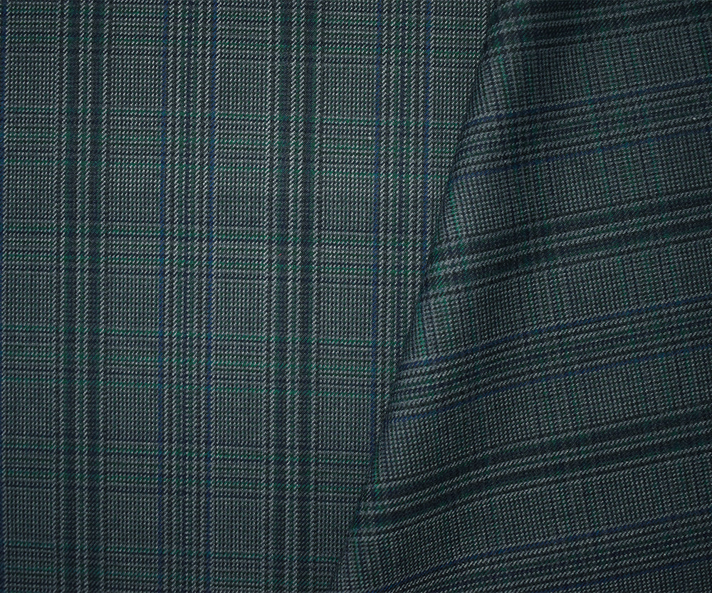 Green-Blue-Multi Wool-Poly Japanese Plaid Woven Suiting Fabric