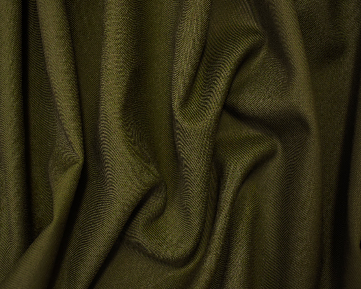 Green Wool Poly Solid Twill Woven Suiting Fabric