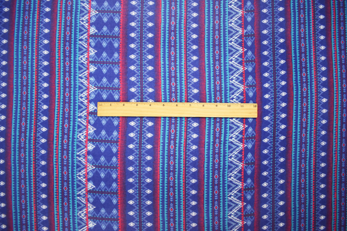 Blue-Multi Poly Aztec Stripe Printed Pebble Chiffon Woven Fabric