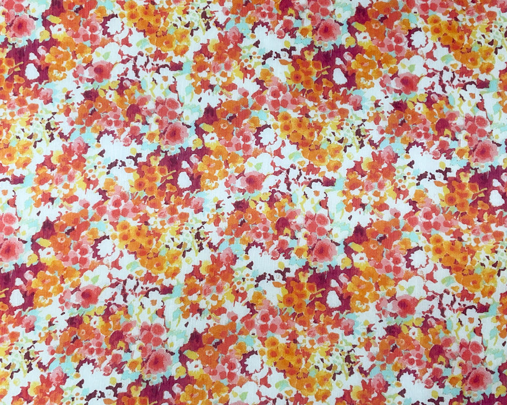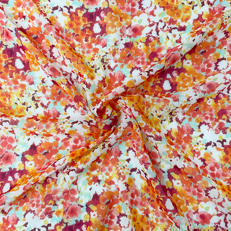 Orange-Multi Poly Floral Print Crinkle Yoryu Chiffon Woven Fabric