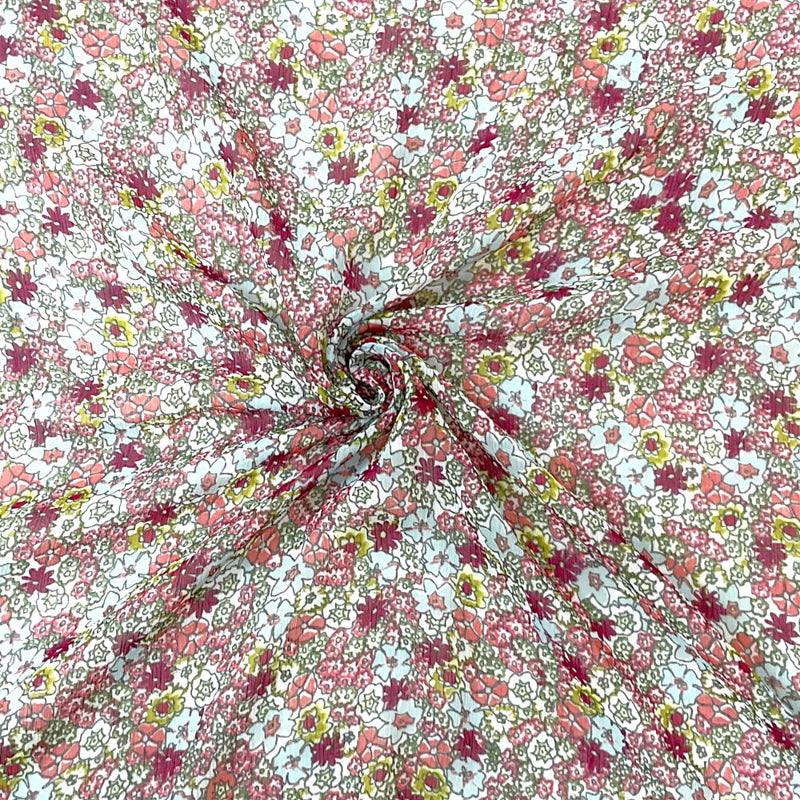 Red-Multi Poly Floral Printed Crinkle Yoryu Chiffon Woven Fabric