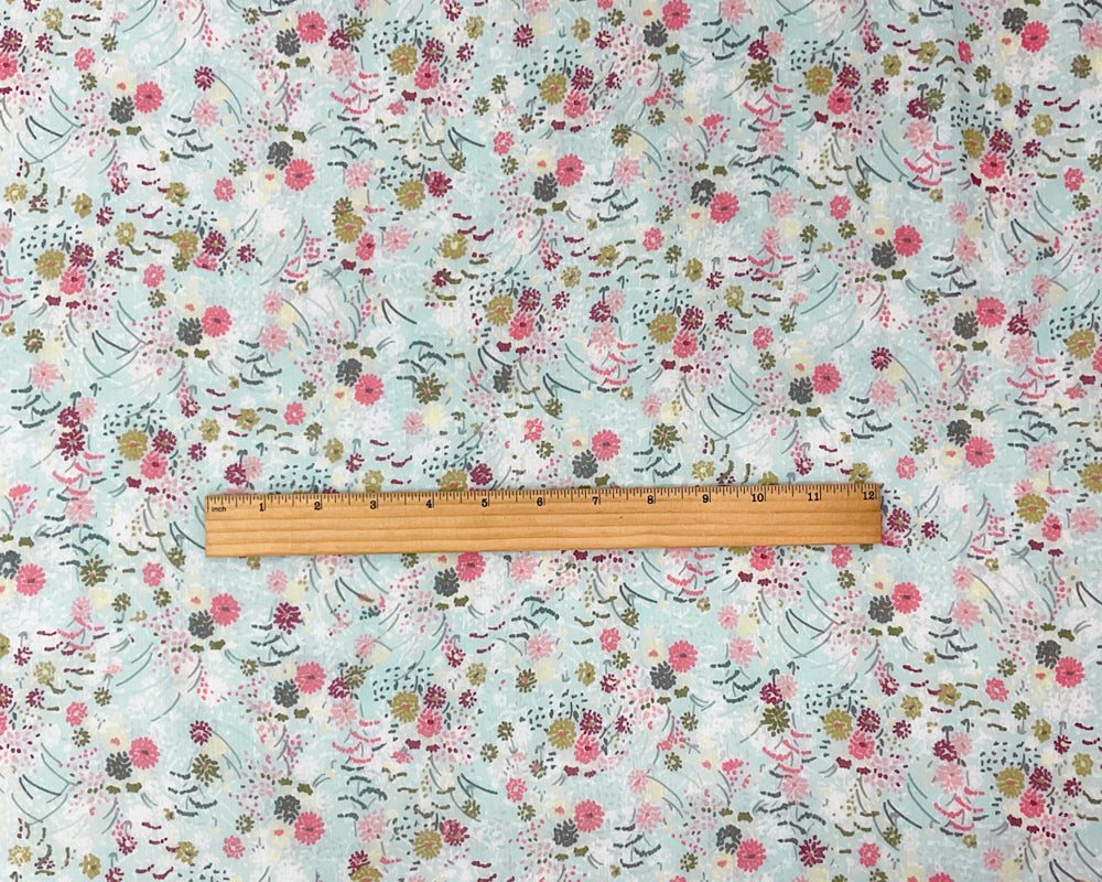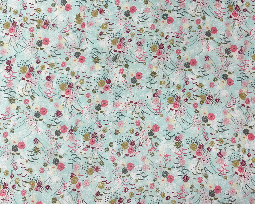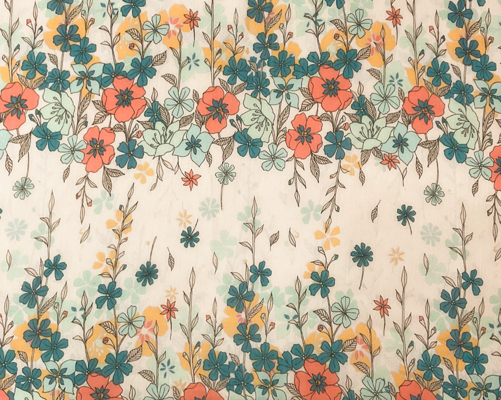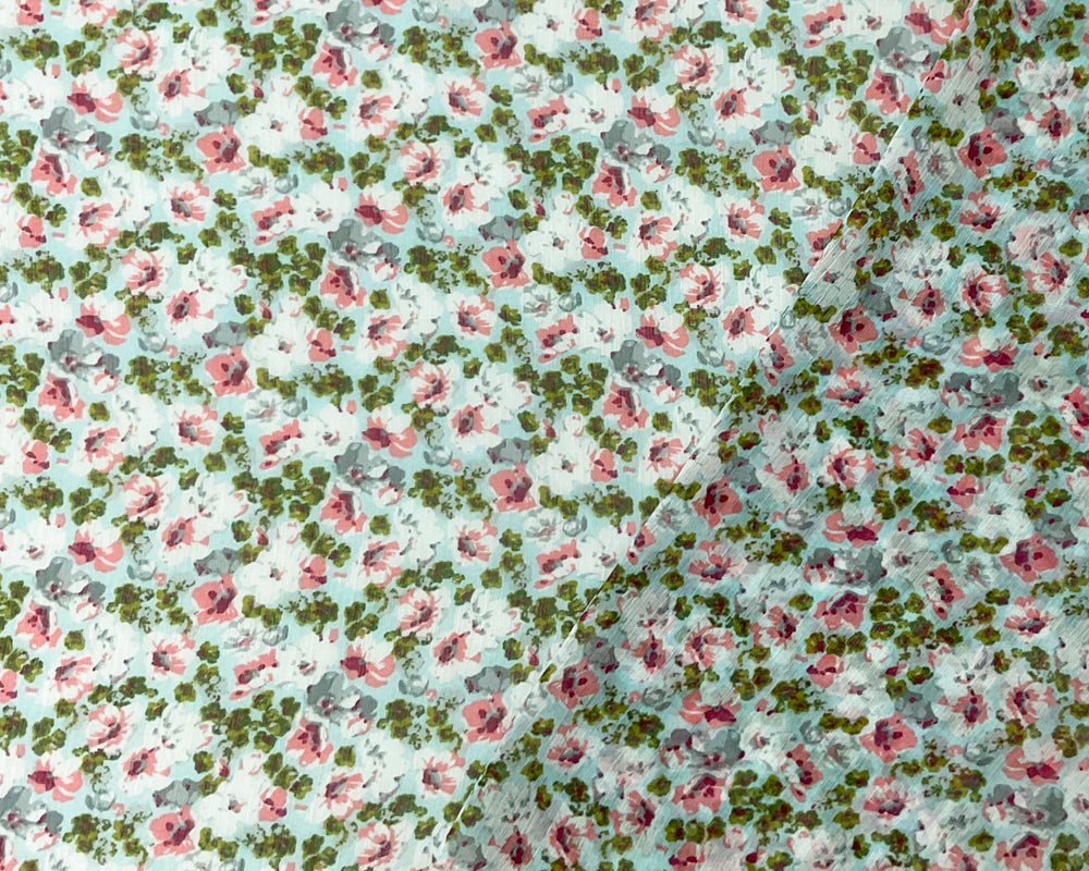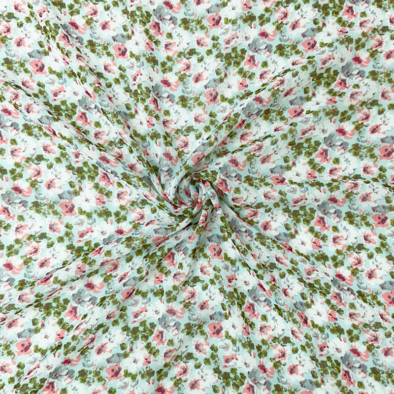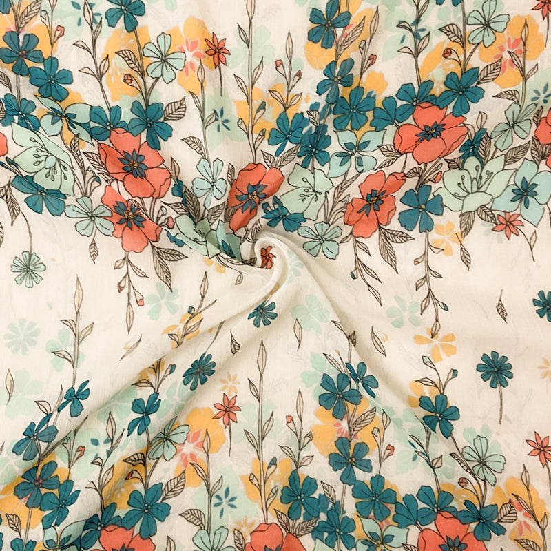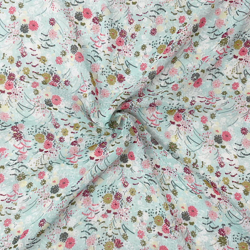 Teal-Multi Poly Floral Printed Crinkle Yoryu Chiffon Woven Fabric