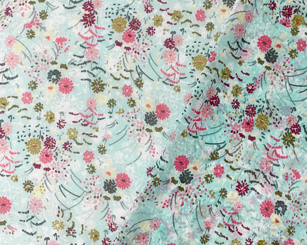 Green-Multi Poly Floral Printed Crinkle Yoryu Chiffon Woven Fabric