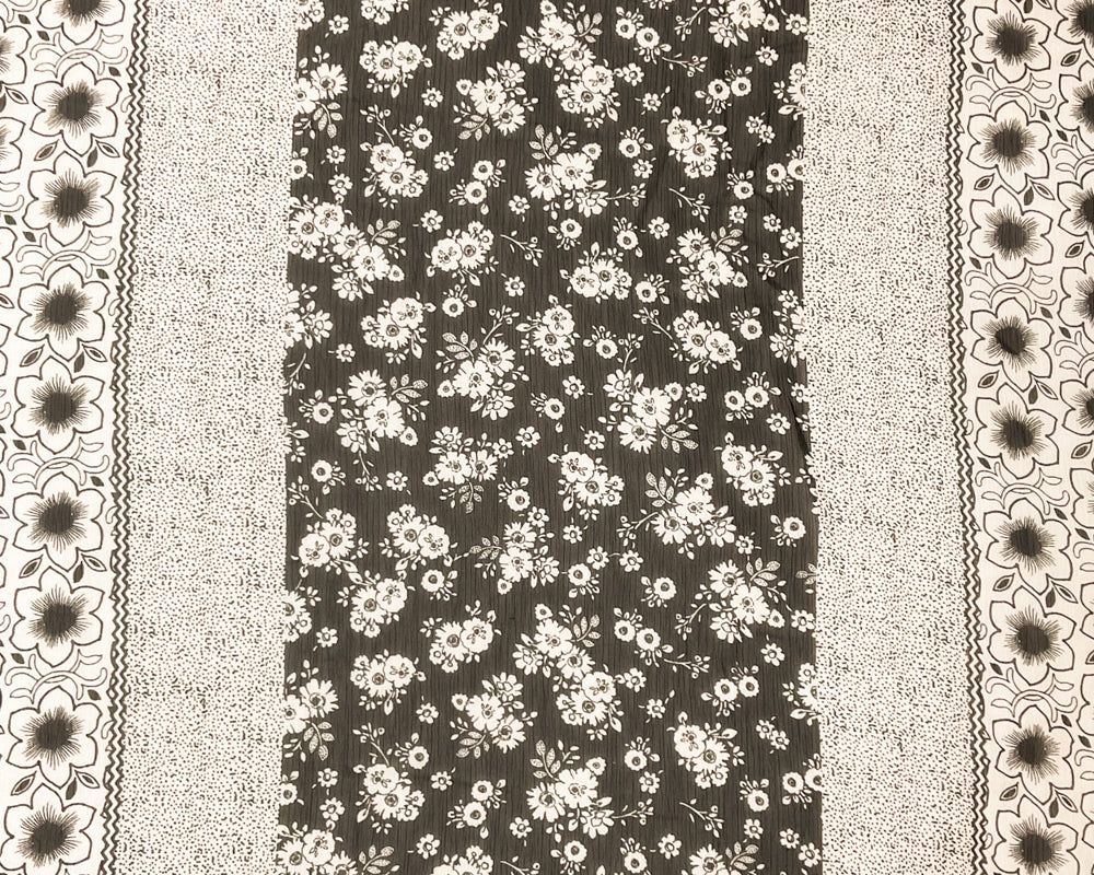 Black-Multi Poly Floral Printed Stripe Satin Chiffon Woven Fabric