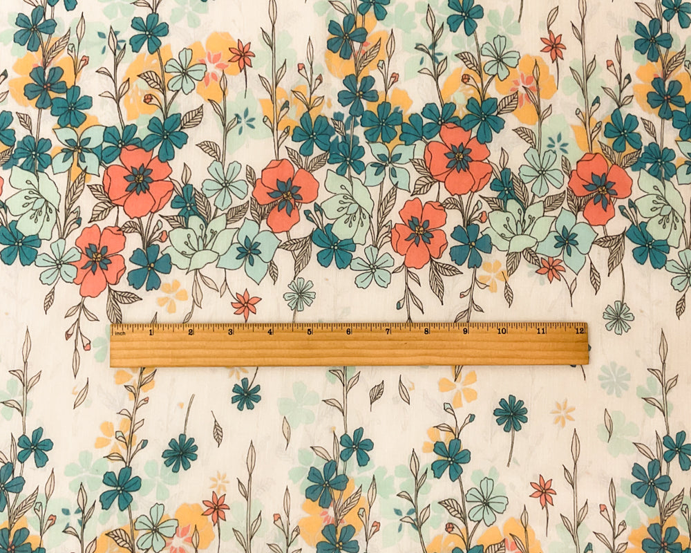 Blue-Multi Poly Floral Border Printed Yoryu Chiffon Woven Fabric
