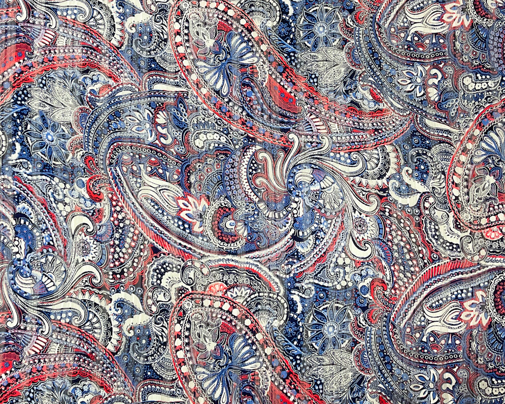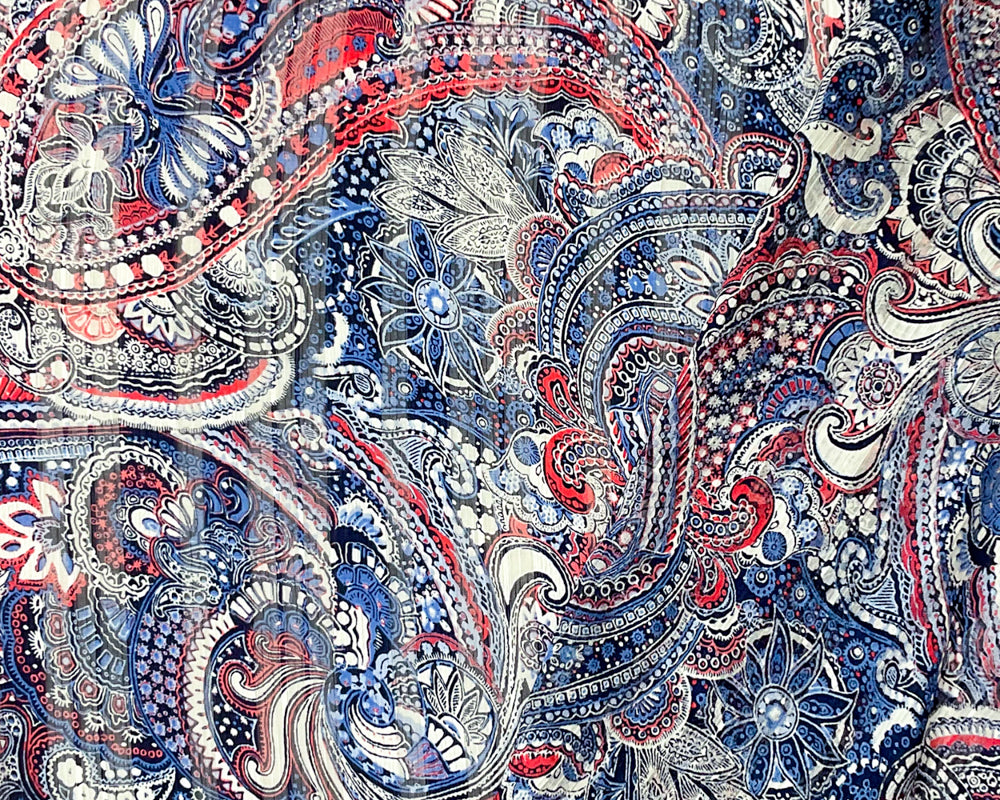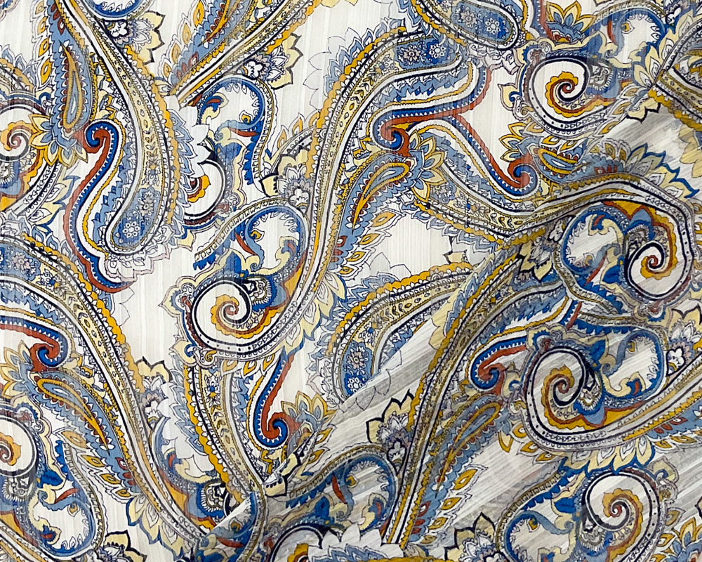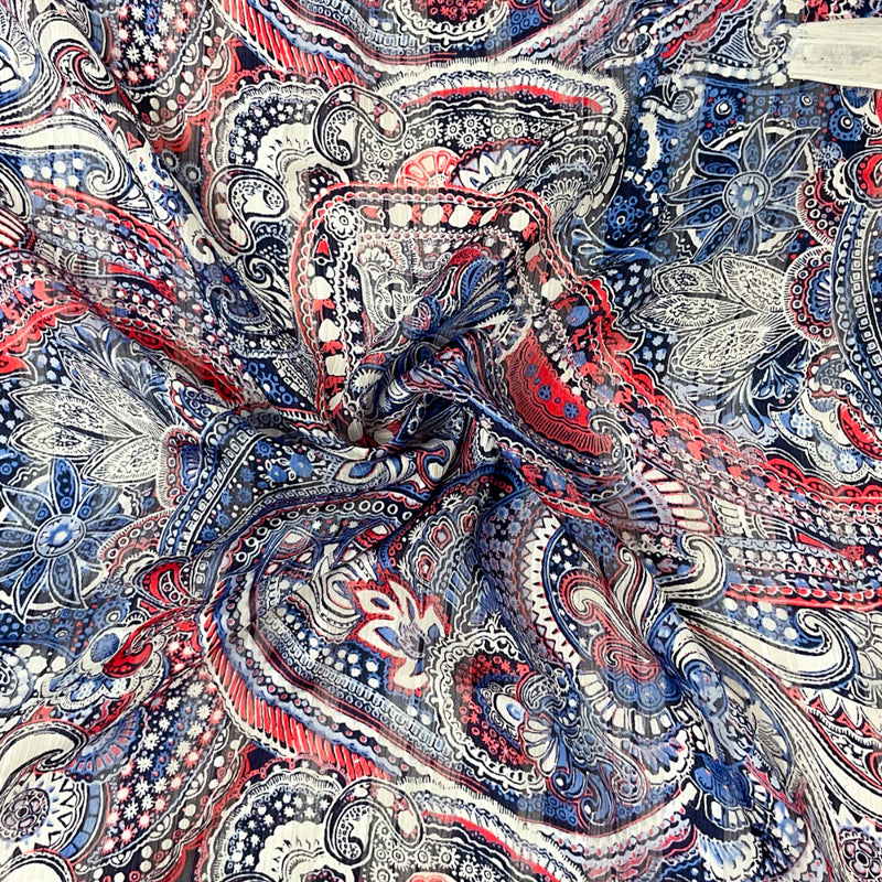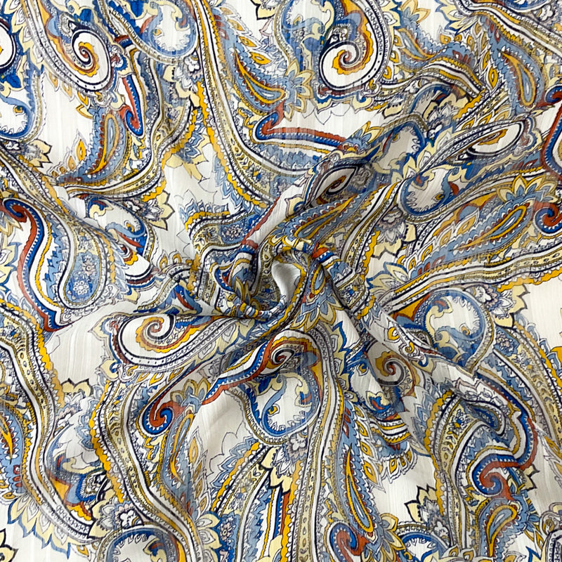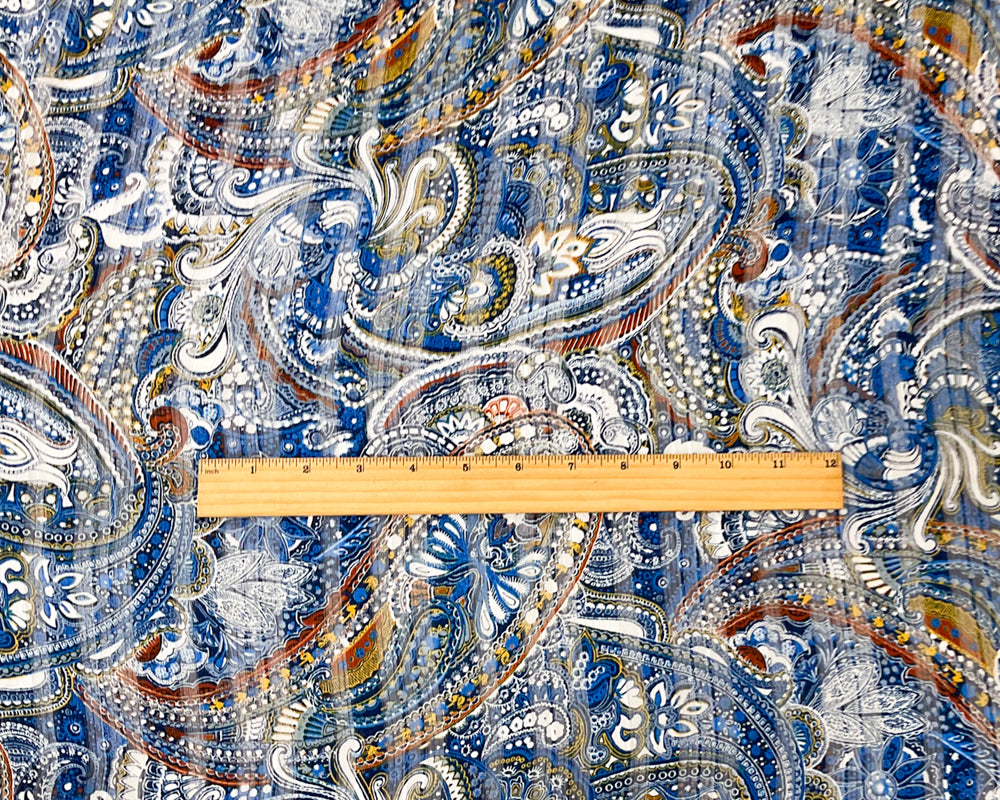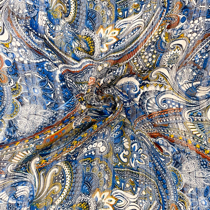 Blue-Multi Poly Paisley Printed Satin Stripe Chiffon Woven Fabric