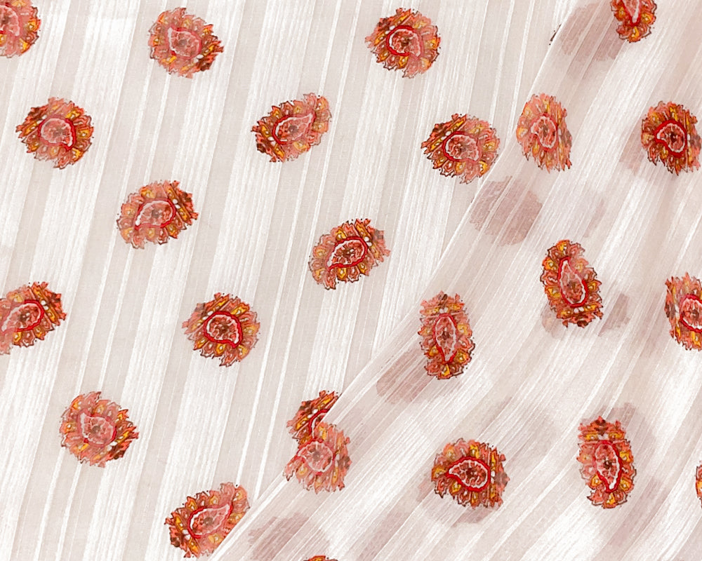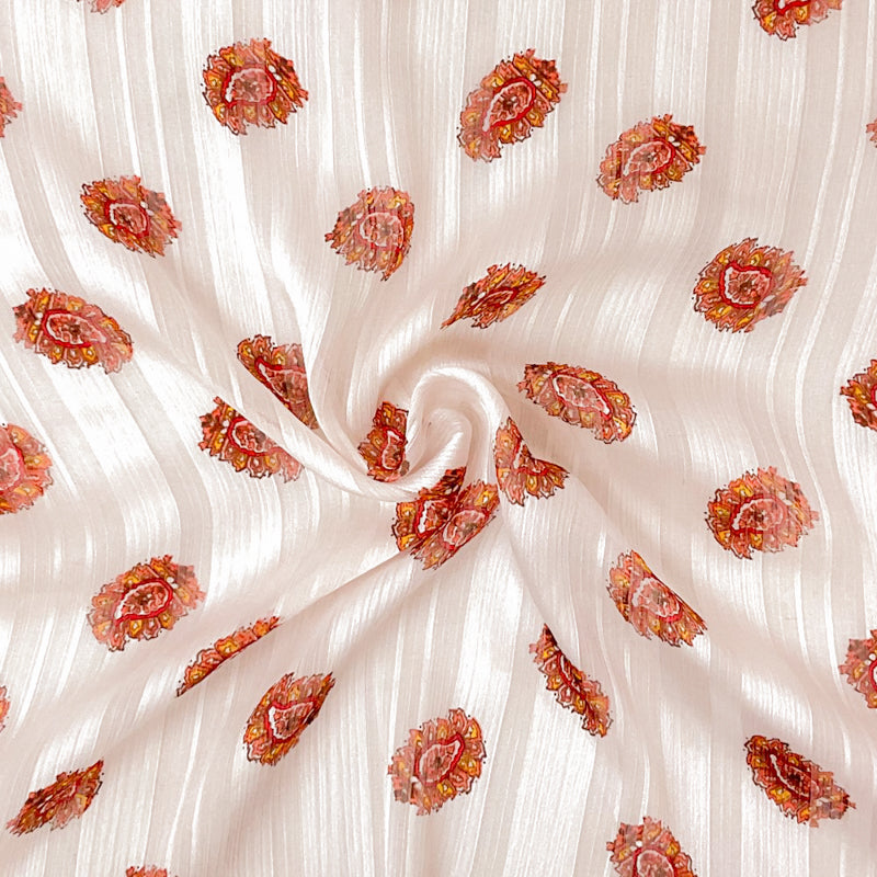 Orange-Multi Paisley Print Satin Stripe Chiffon Woven Fabric